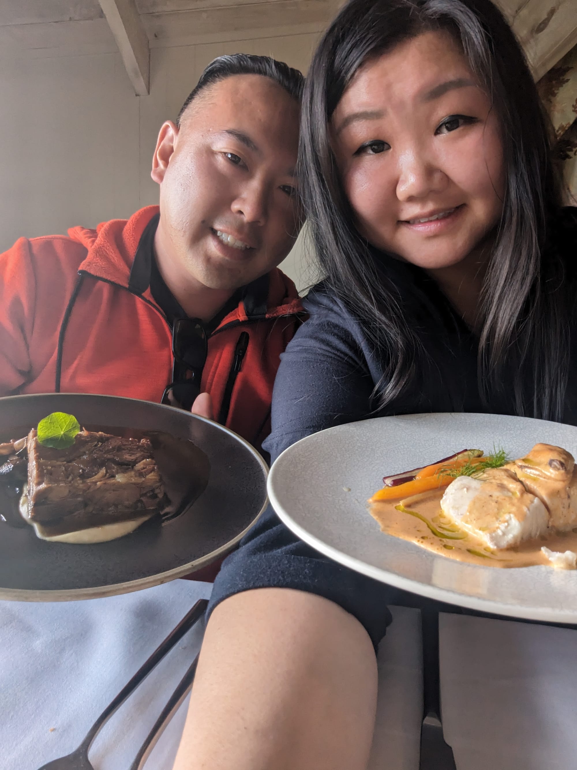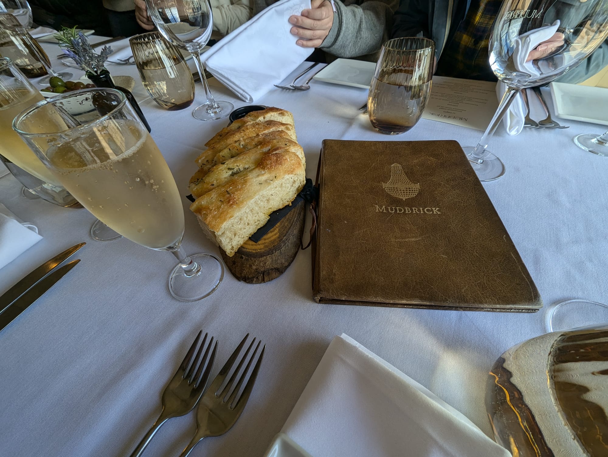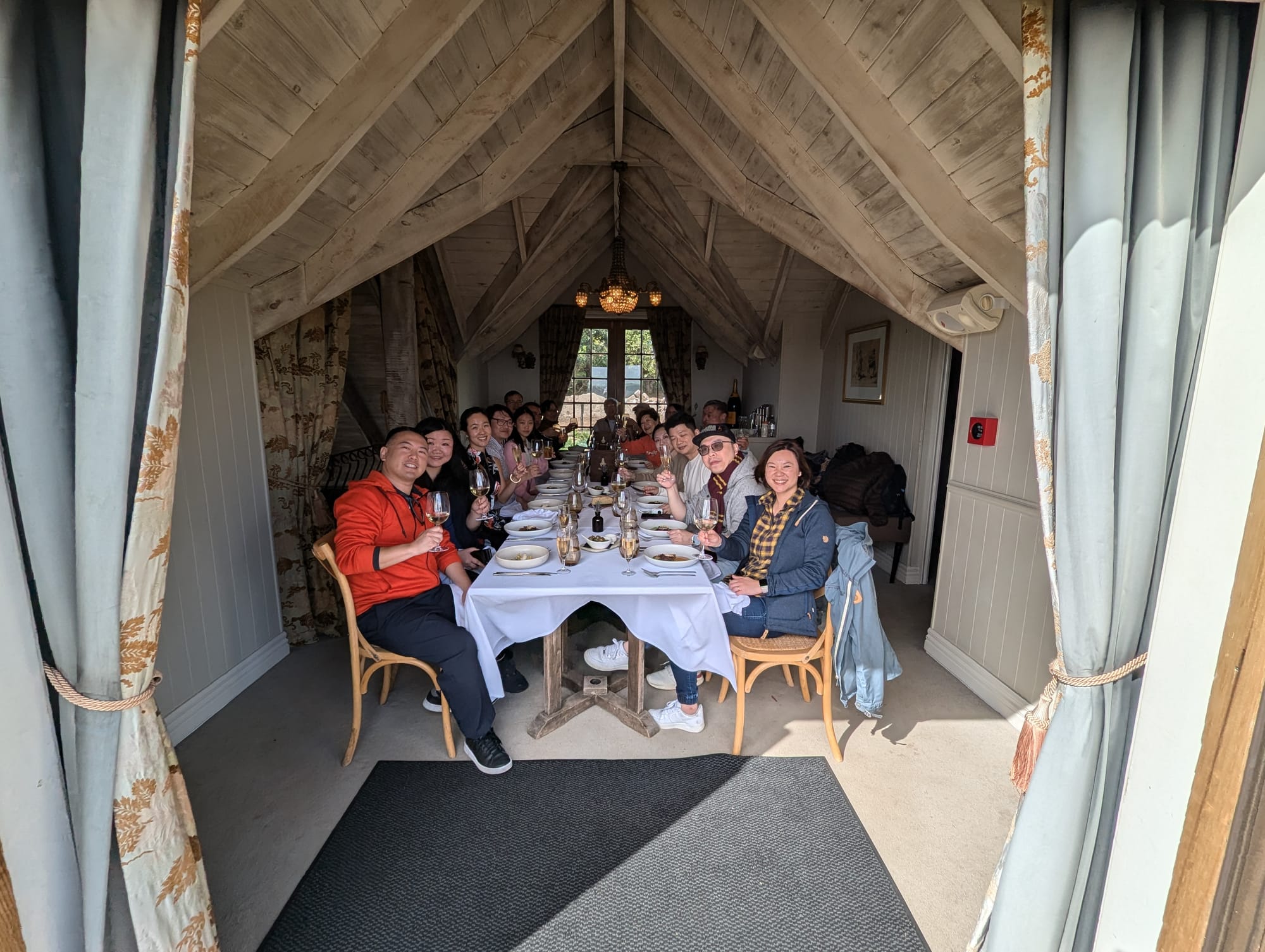 First stop was a vineyard named Mudbricks. This is where they had made reservations for us to have lunch. The location was beautiful. We arrived a bit early, and so we got to roam and explore the vineyard a bit, before settling in for lunch. Did a forget to say, it’s winter in New Zealand? The grass here seems greener in the winter, than our grass in the middle of summer 😝