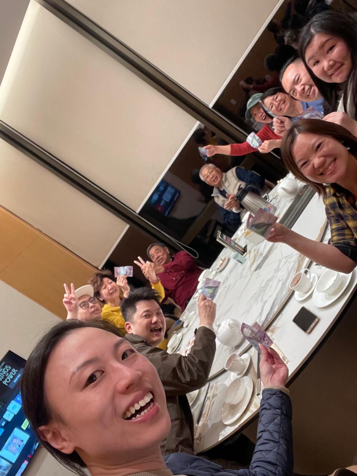 She was so happy, and didn’t have any red envelopes with her, she started handing out cash to everyone at the table 😝