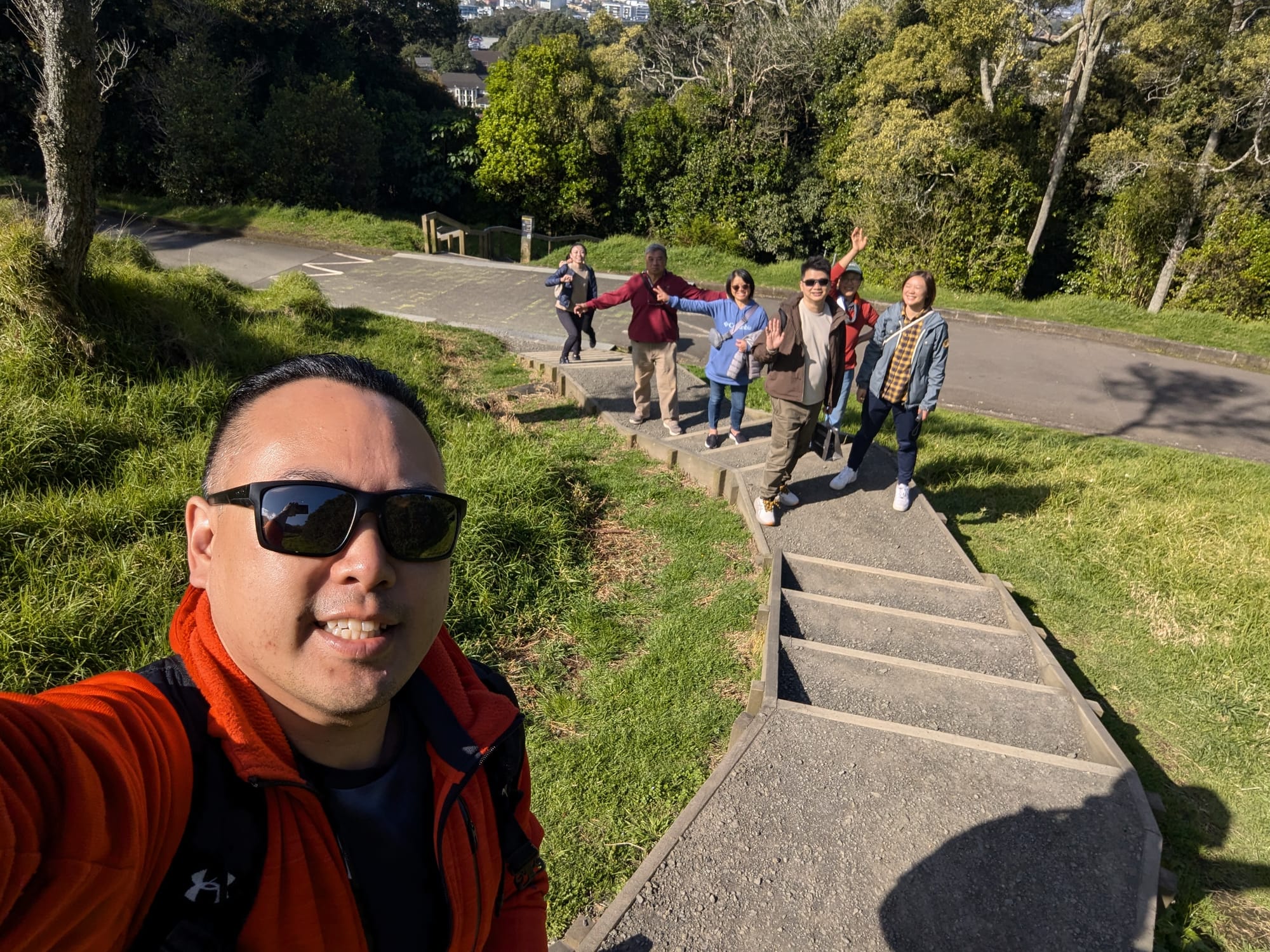 When we reached the top of Mt.Eden, Vincent brought out one of his new toys for us to play with. He attached his camera to a really long selfie stick, which we passed around to take a 360 degree video of our surroundings. We later discovered that with our several 360’s of the camera, he never started the recording. But at least we still have a lot of great photos