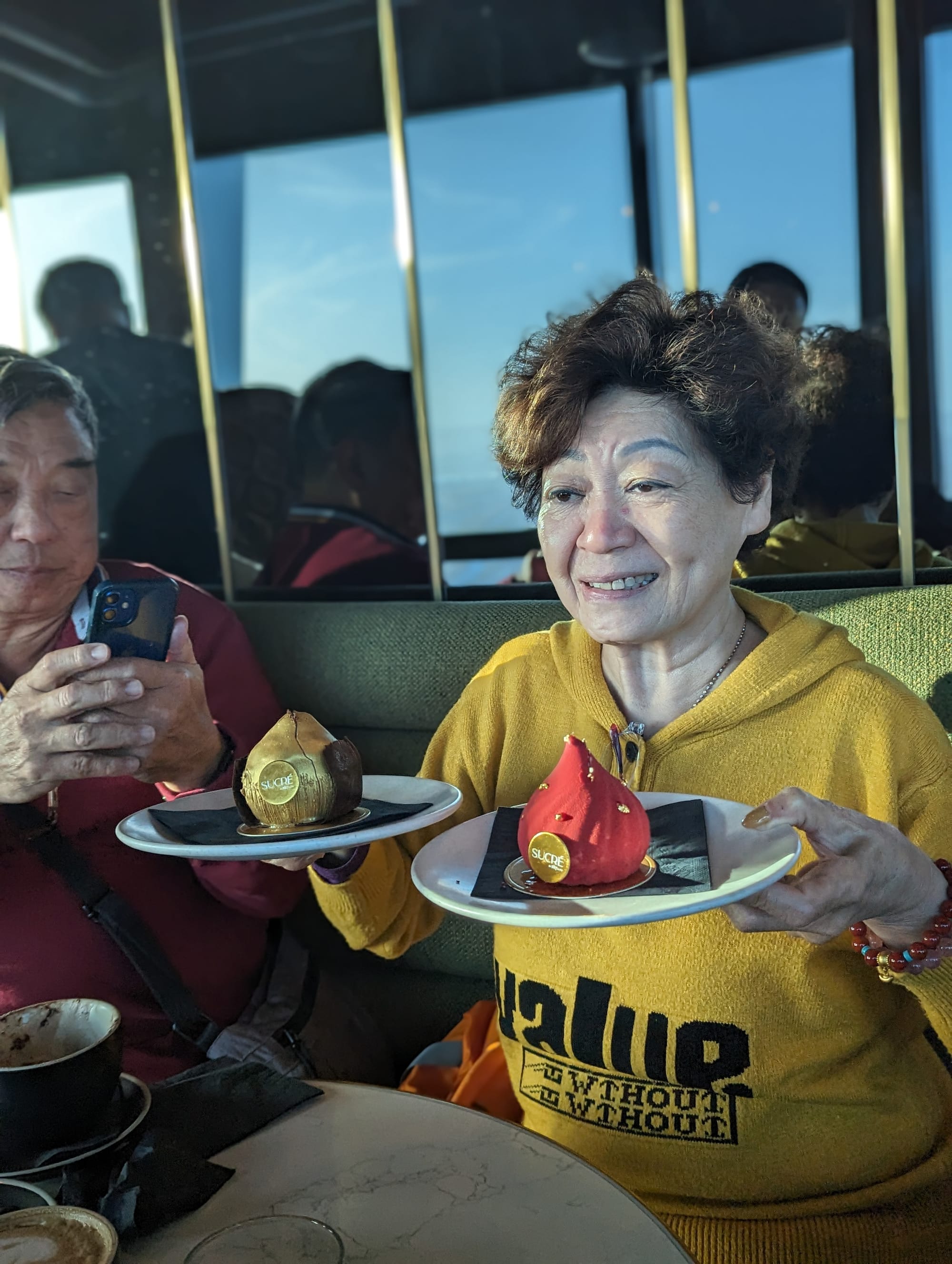 Followed by drinks and cake in the Sky Tower for Auntie2’s birthday! She liked our cake choices very much!