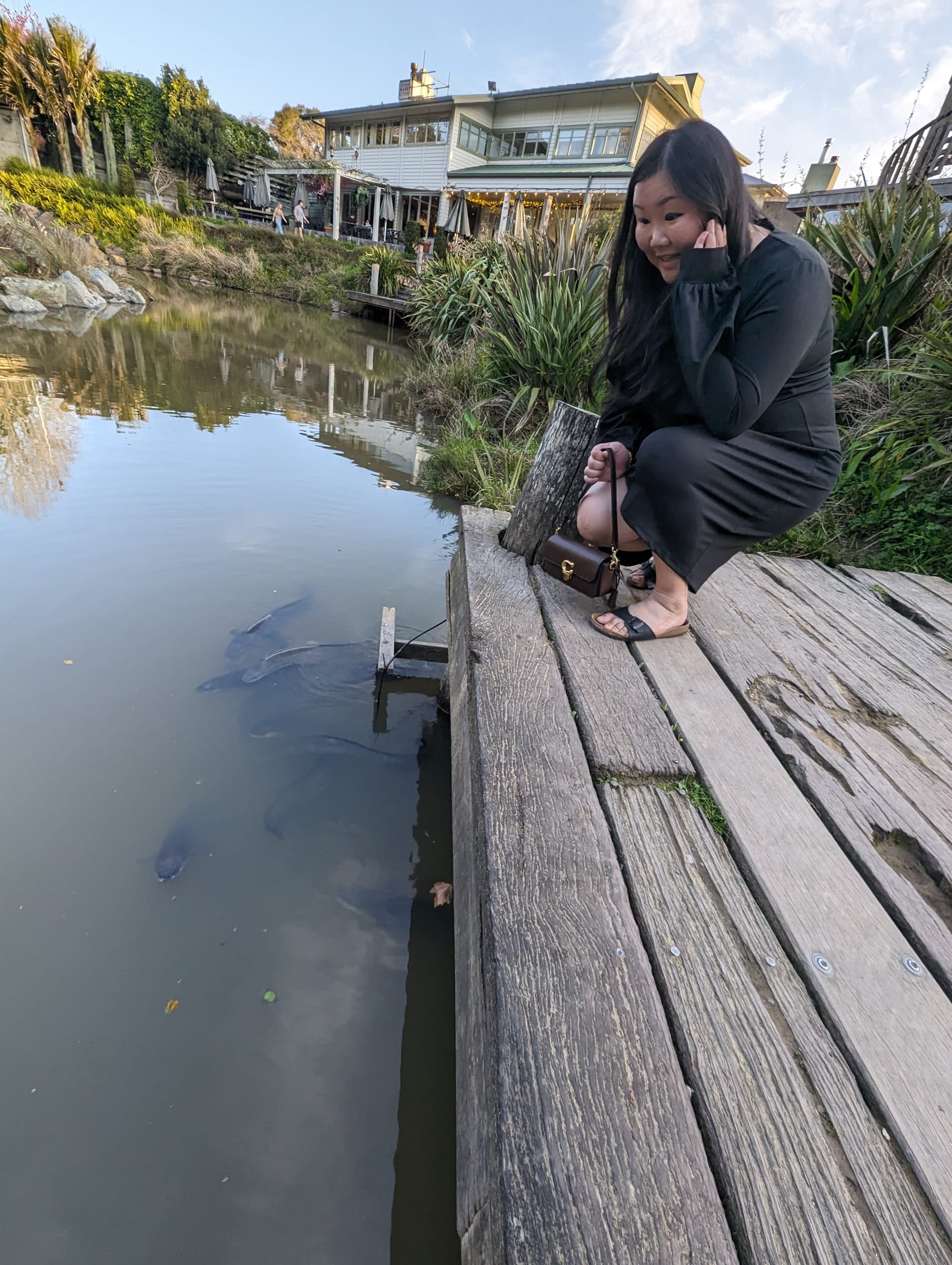 After taking more pictures, we decided to head to a nearby strip mall, as we had quite a bit of time before the dinner reception. Behind the strip mall, was a shallow river with a bunch of giant fish.