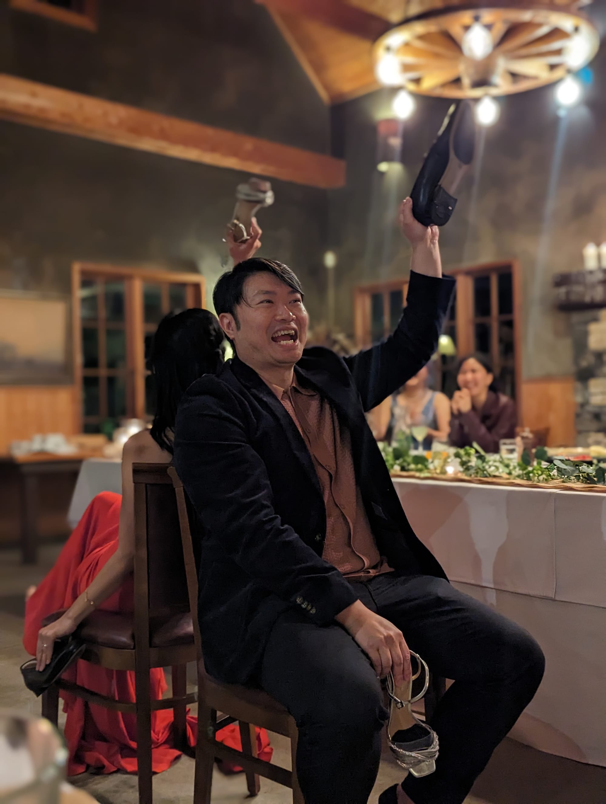 I think this was the first time I’ve seen the groom THIS into the shoe game!