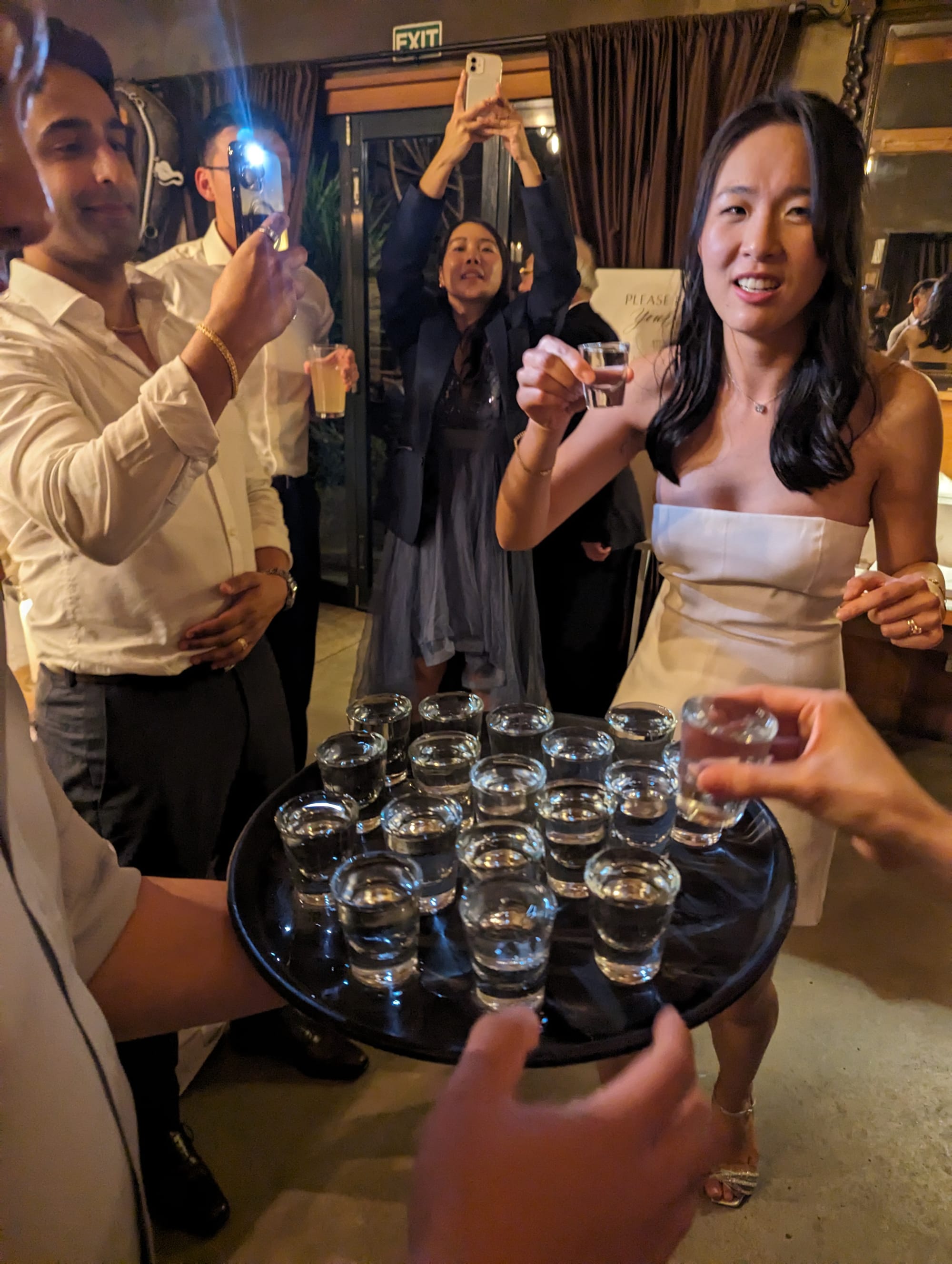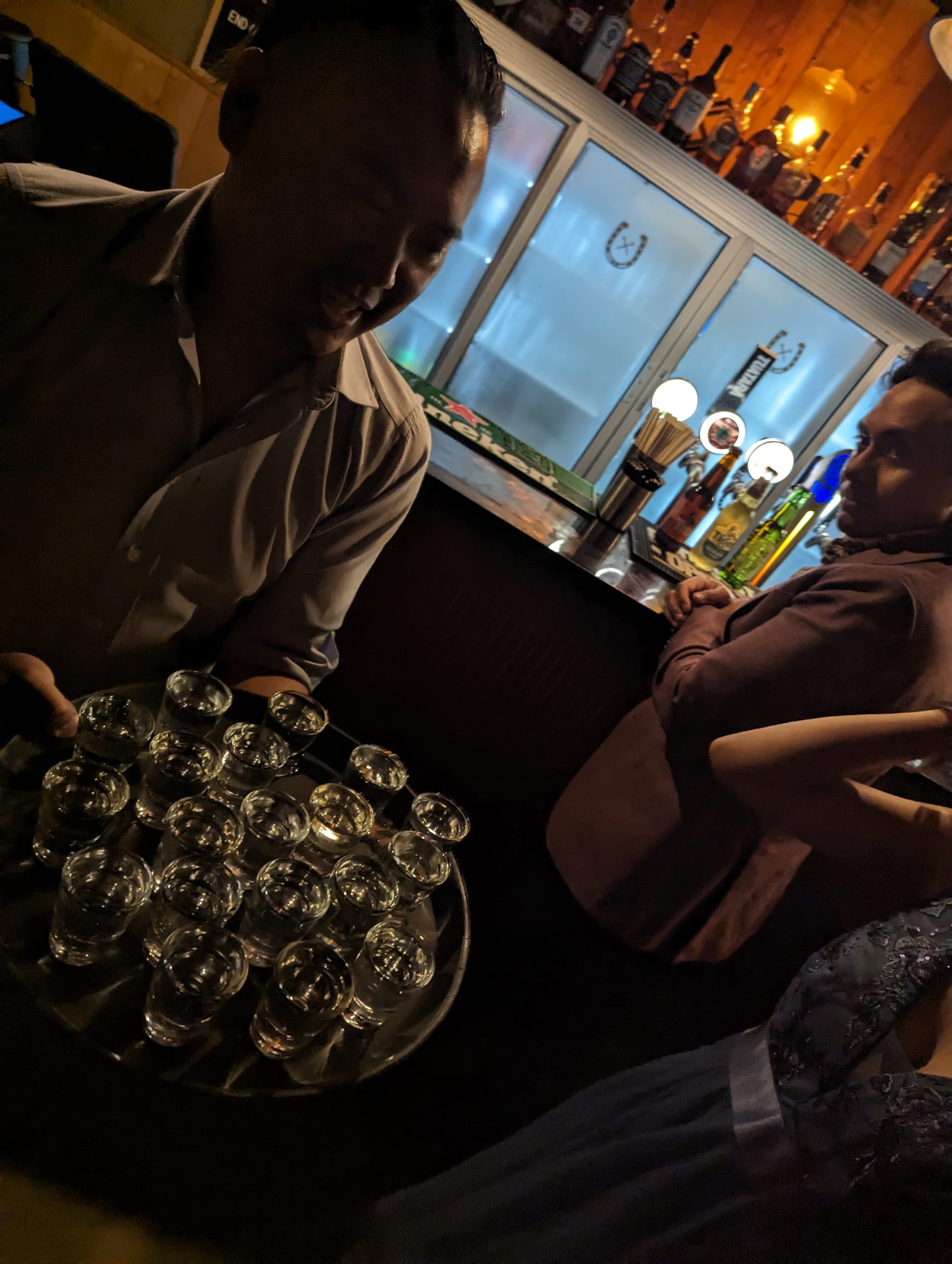 And look how happy she looked when I showed up with a tray of shots! Simon, looked kinda nervous 😛 Shhh, don’t tell her. The shot glasses were filled with beer 😜