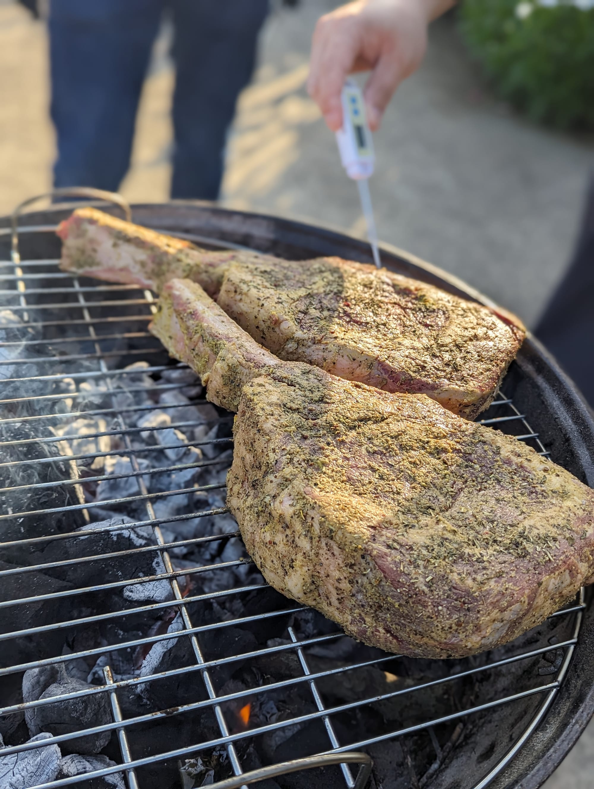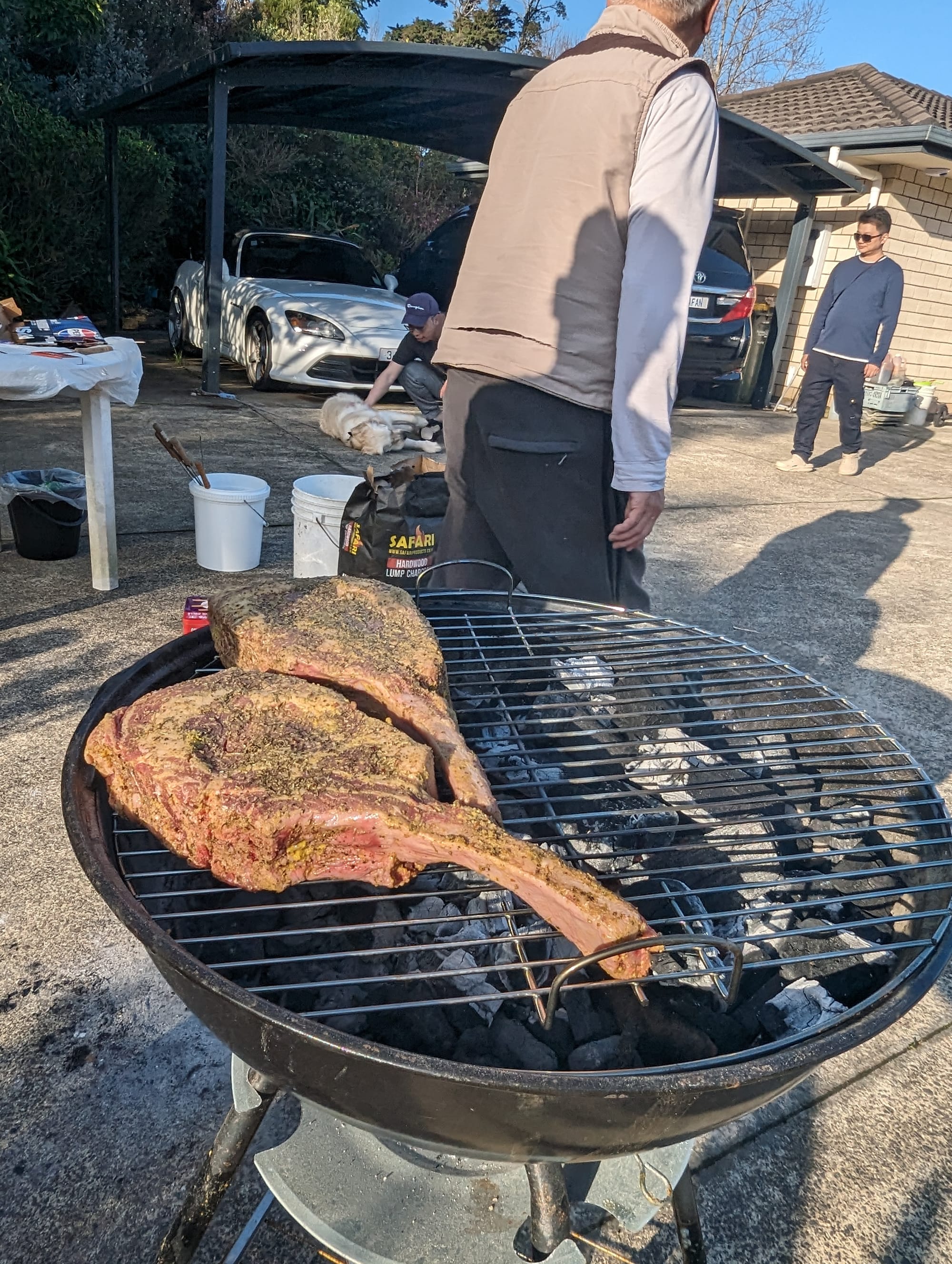We bought and prepped the tomahawk steaks, along with a bunch of wings, the day before the wedding. Today however, we went around Auckland to try and buy a sous vide. We went to half a dozen shops, and none of them sold sous videos. When we asked the staff, they all recommended Amazon. Funny thing about Amazon in New Zealand, is they don’t have Amazon Prime like we have. Everything is from Australia. Even if Amazon prime were an option, we needed that sous vide today! Upon giving up, Ada decides to take the lead and call Jack for advice on how to cook/handle the tomahawks. Jack‘s advice… “Jonny is there! He’ll know how to handle them!”. Thanks for the faith Jack 😛 Was a bit tough, as I didn’t know the grill, but managed to handle it.