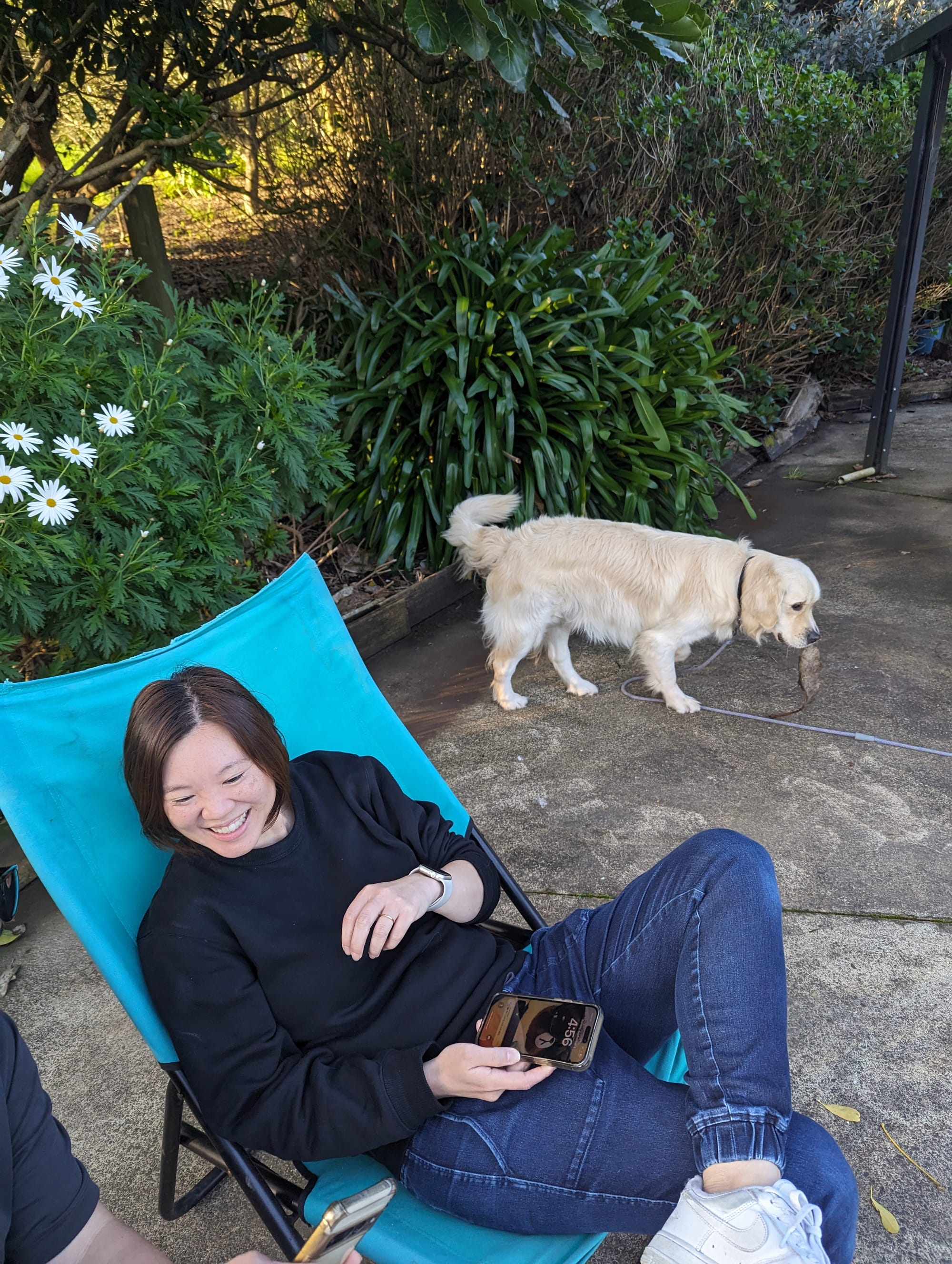 Barbecuing such big steaks though, it takes a while. Great opportunity for us all to hangout outside, chill, and play with Milo and the electric scooter! Even mom took a quick ride on the electric scooter.