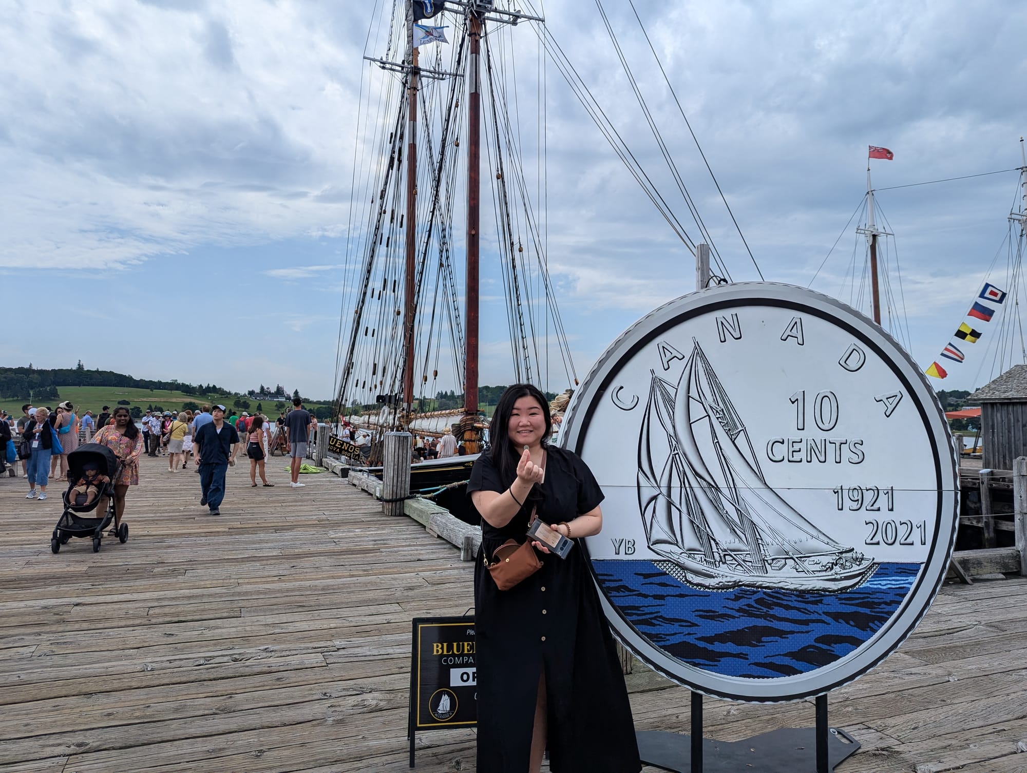 We then found our way to the Bluenose where we were able to board and checkout many of the spaces on board. The Bluenose is the boat that's on the Canadian Dime. Wincy even found a dime in her wallet, so we could take a picture