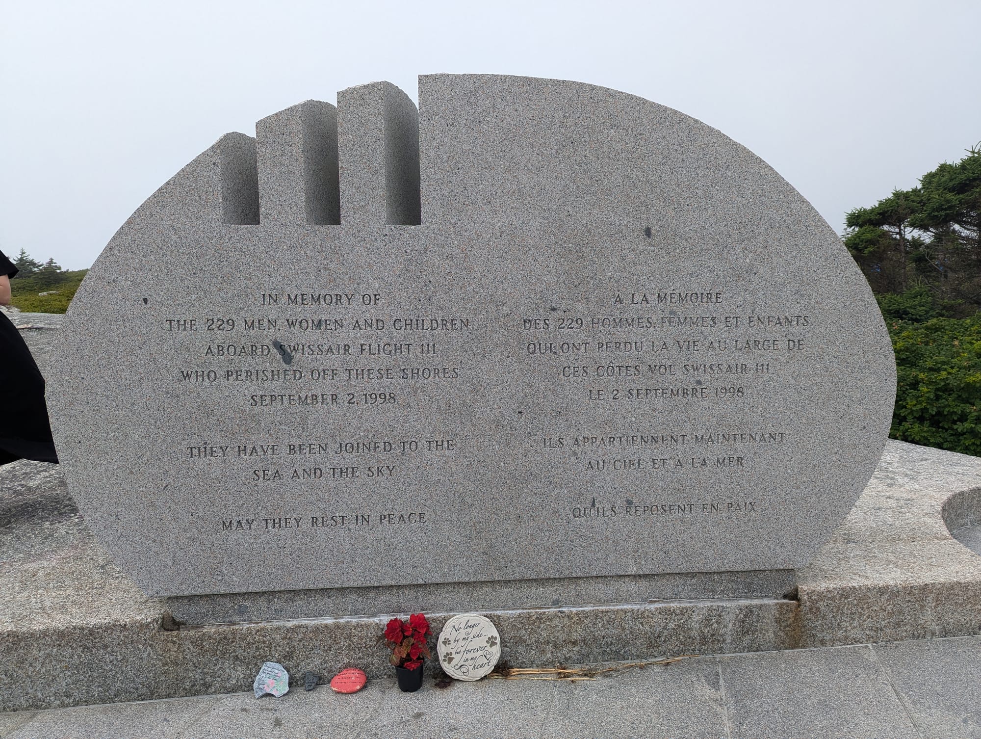 After spending some time in Lunenburg, we started driving towards Peggy's Cove. On the drive there, we also stopped by the memorial site for Swissair flight 111. It was quite foggy when we stopped there, so couldn't see that far out.