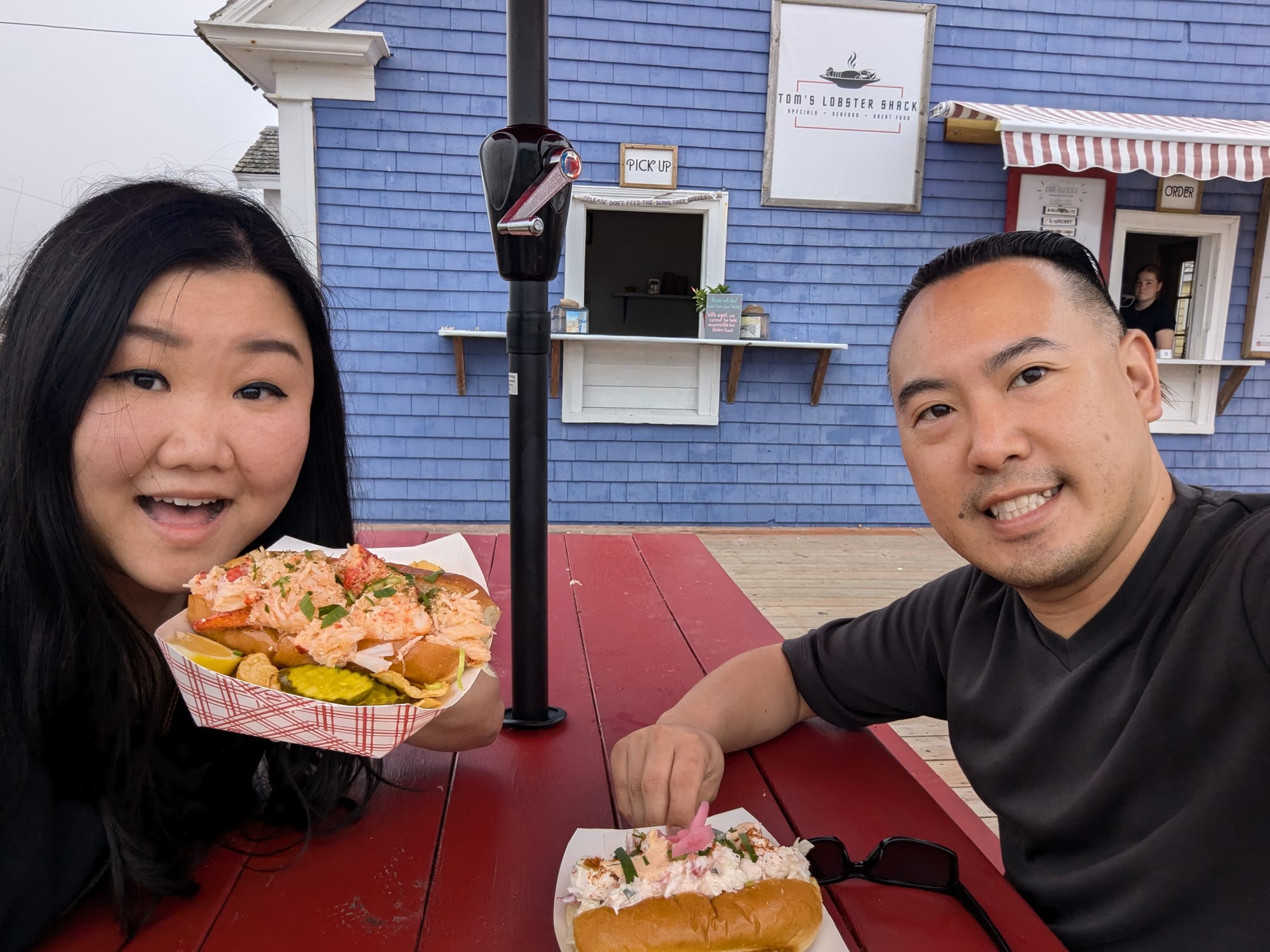 After some mandatory pictures at the lighthouse, we walked down a bit to grab some lobster rolls from Tom's Lobster Shack. This lobster roll was so memorable, Wincy still talks about it all the time.