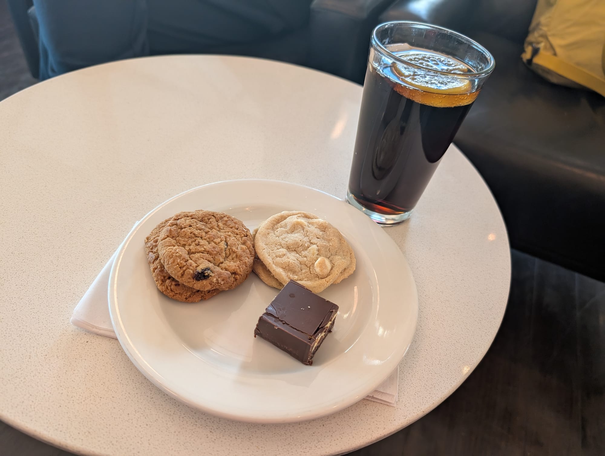 Once through customs, more lounge time. Unfortunately, the US pre-clearance area didn’t have access to the Maple Leaf Cafe, and so we ended up at the standard Maple Leaf Lounge in this section of the airport. Maybe it was just the time of day, but the spread was not good. For hot food, they had rice, coconut curry, and cream of broccoli soup. Or rather, that’s what they were suppose to have. The rice and coconut curry was pretty much empty. We weren’t really hungry though, since we just came from dim sum, so we just settled for desserts and snacks. AC Lounge cookies are always good 😎.