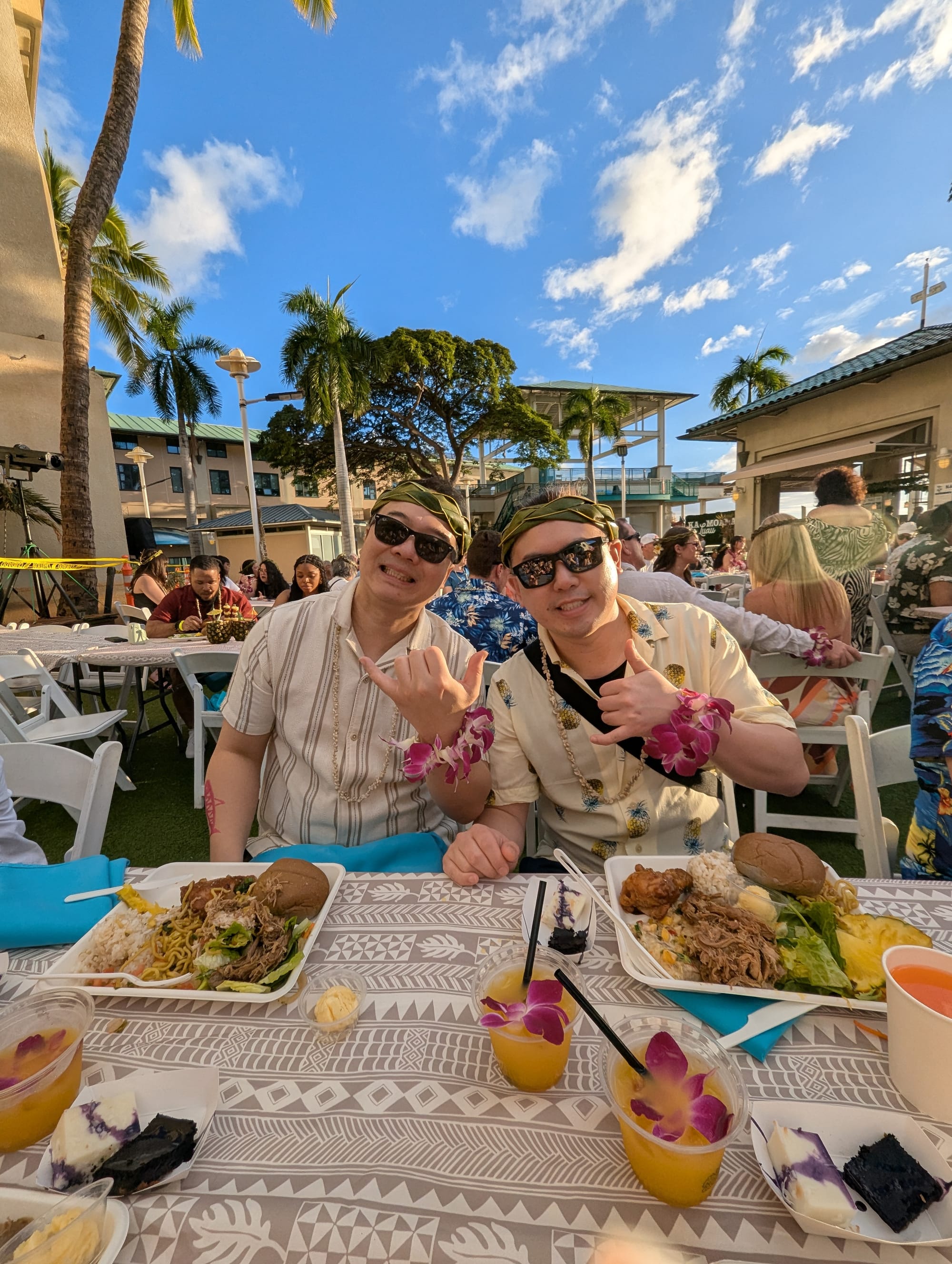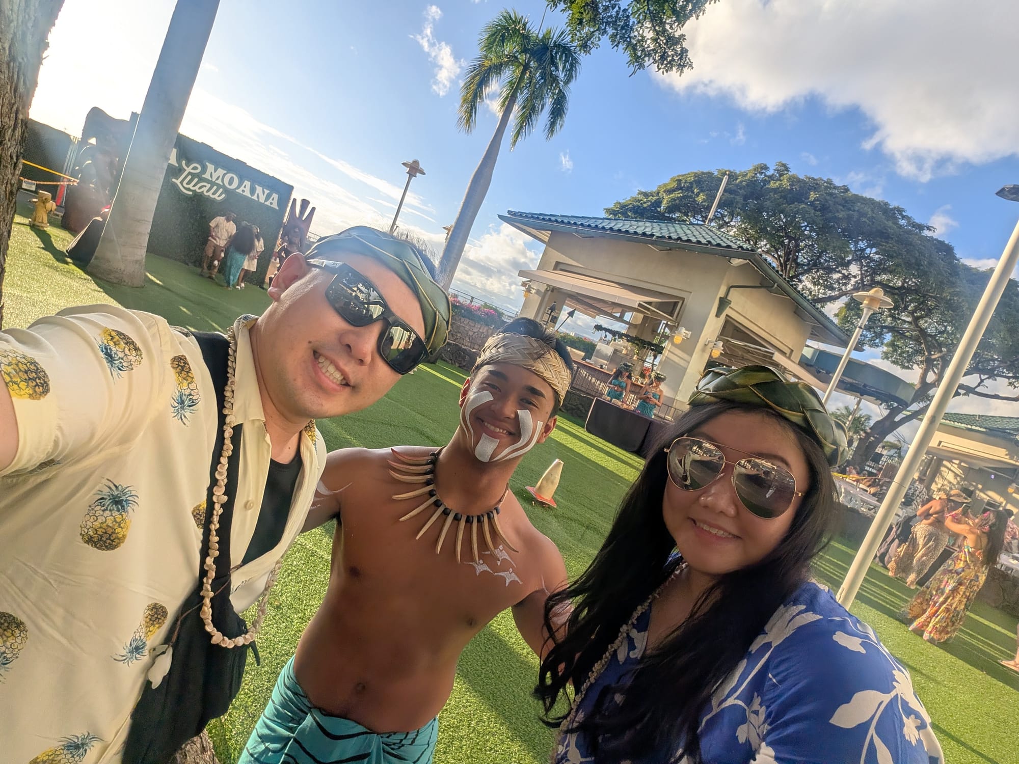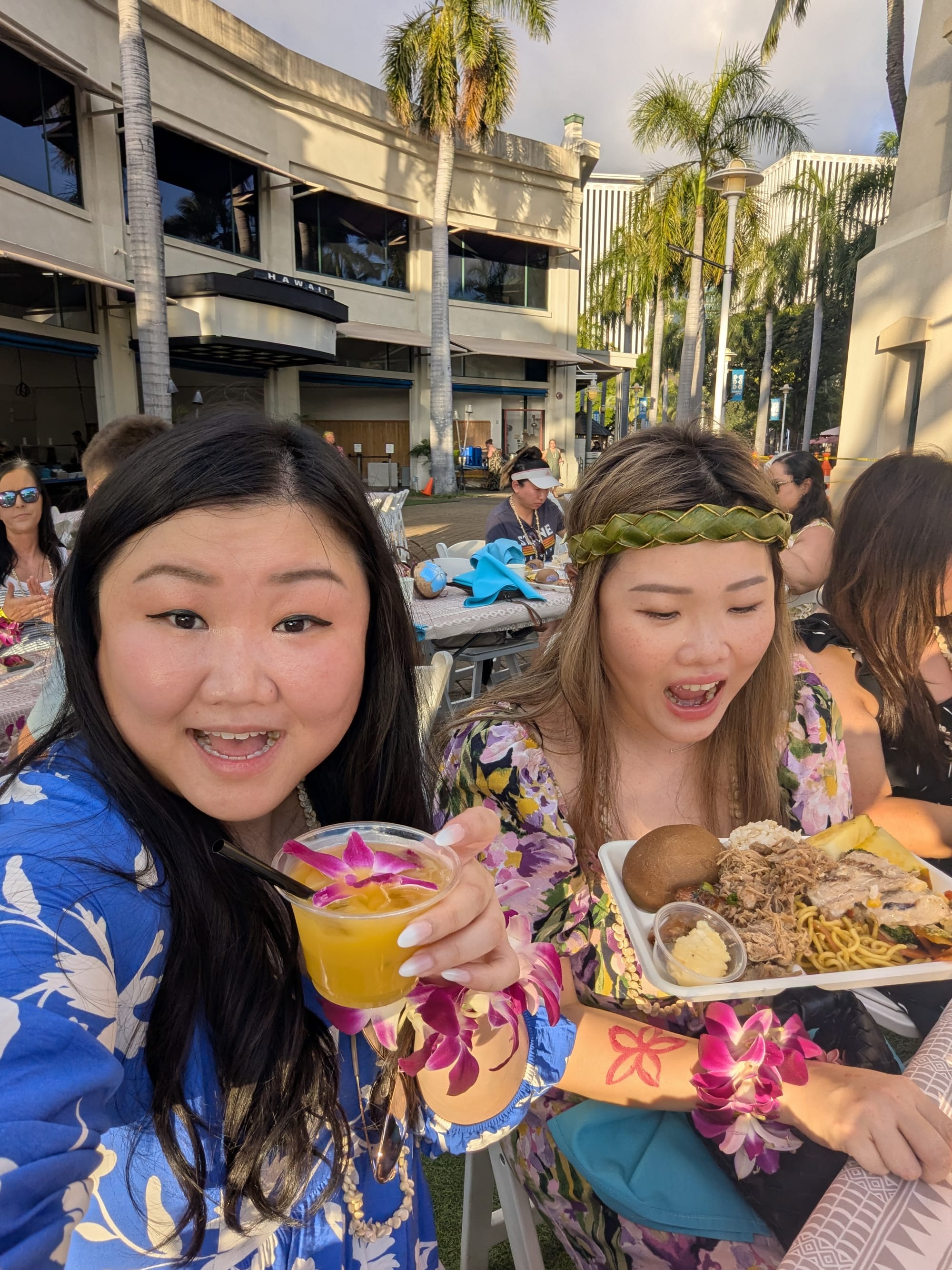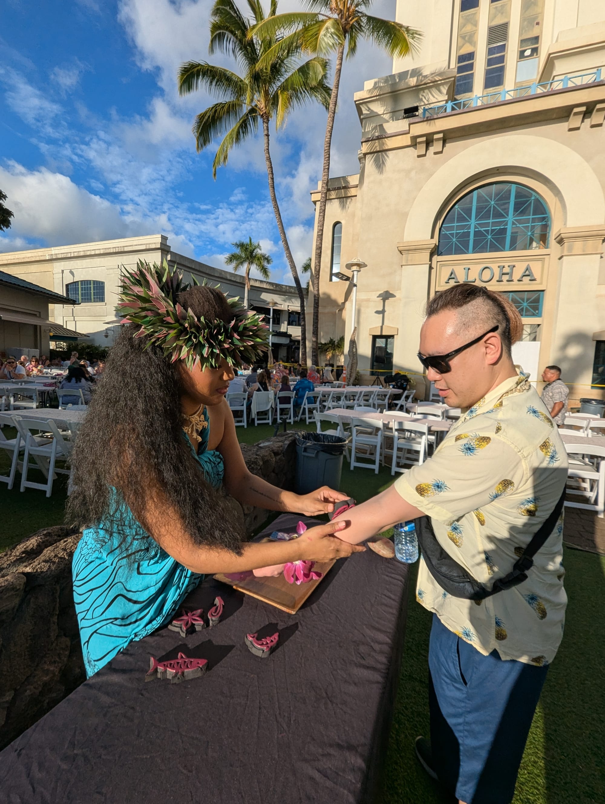 Next stop, Ka Moana Luau! We get our Shell Lei’s, a painted stamp tattoo, and make some banana leaf headwear