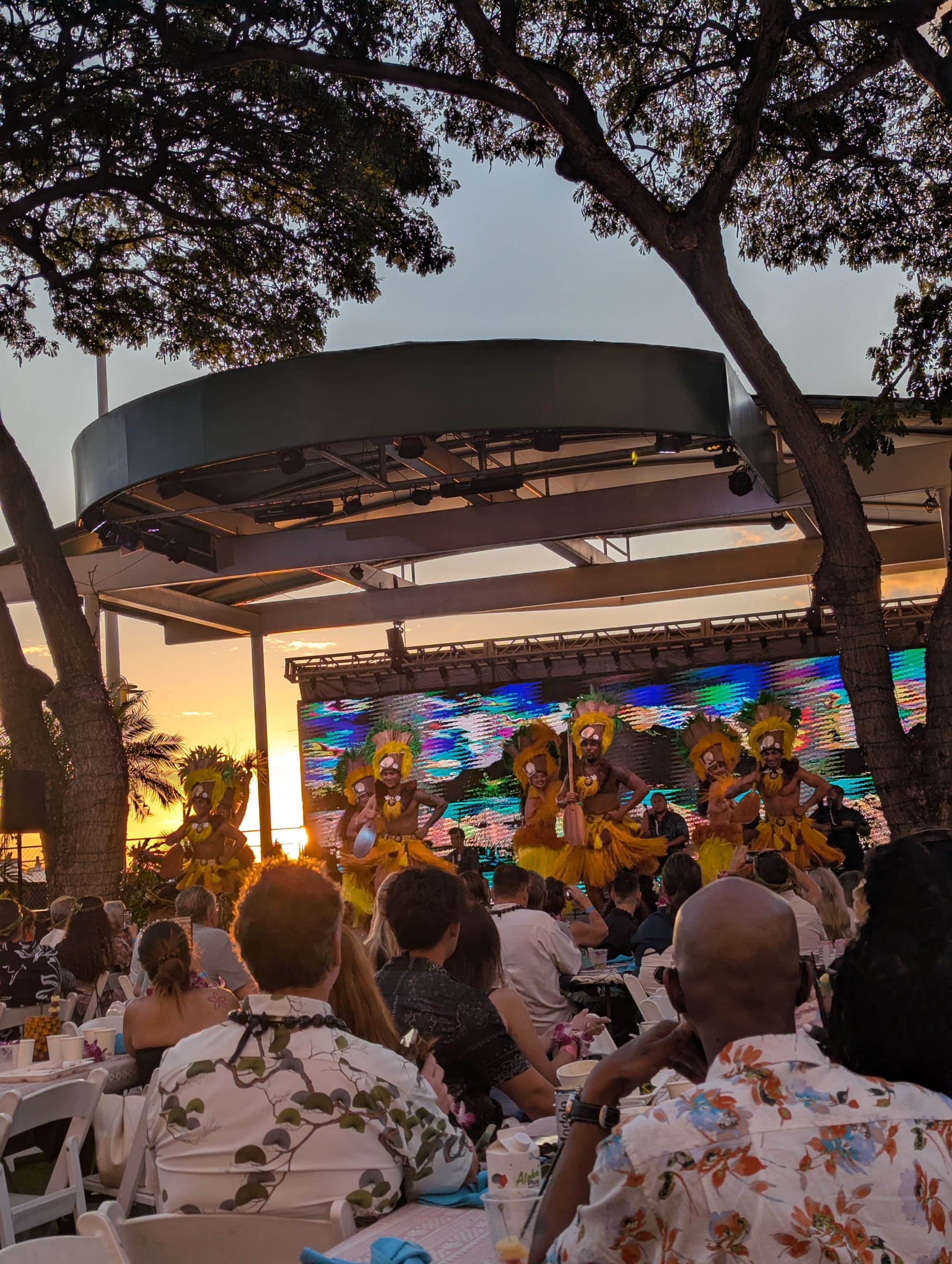 Then the show begins with a beautiful sunset behind the stage.