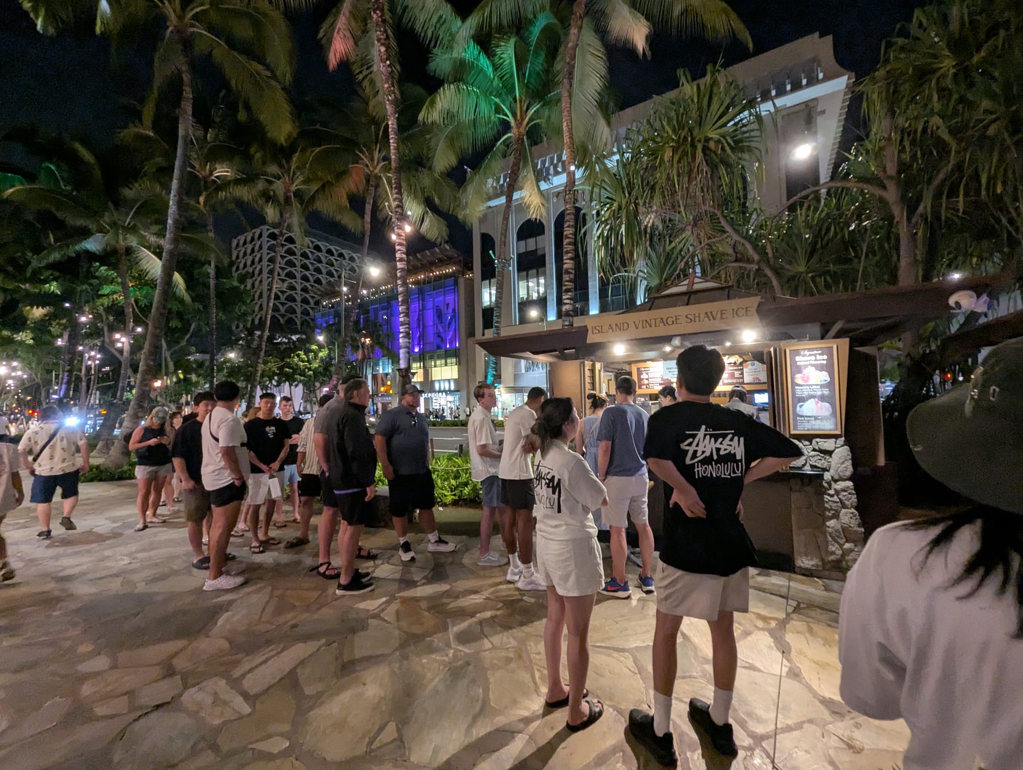 After the luau, we make our way back to Waikiki, and line up for Island Vintage Shaved Ice.