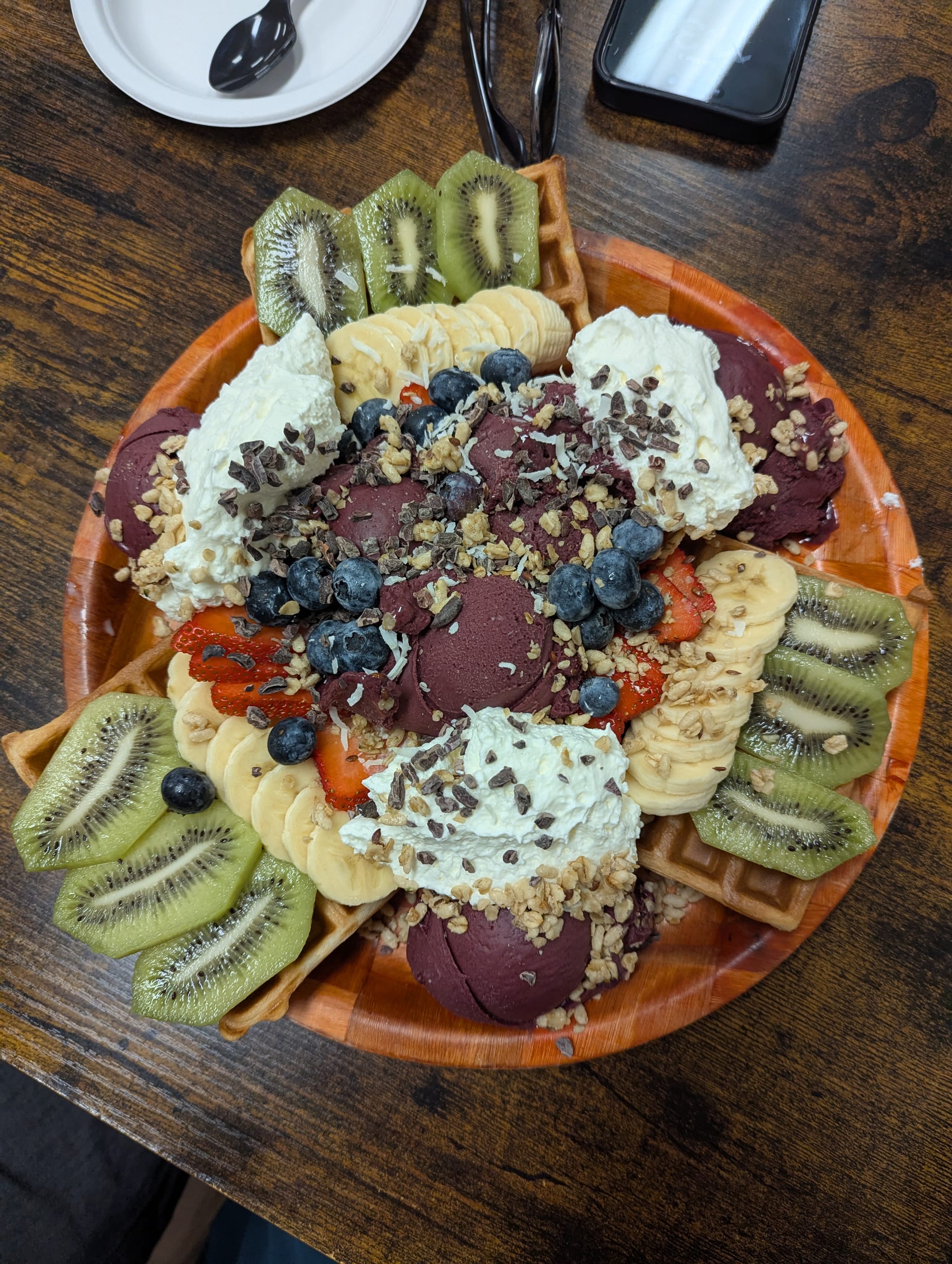 Açai and fruits were fresh, waffle was just okay.