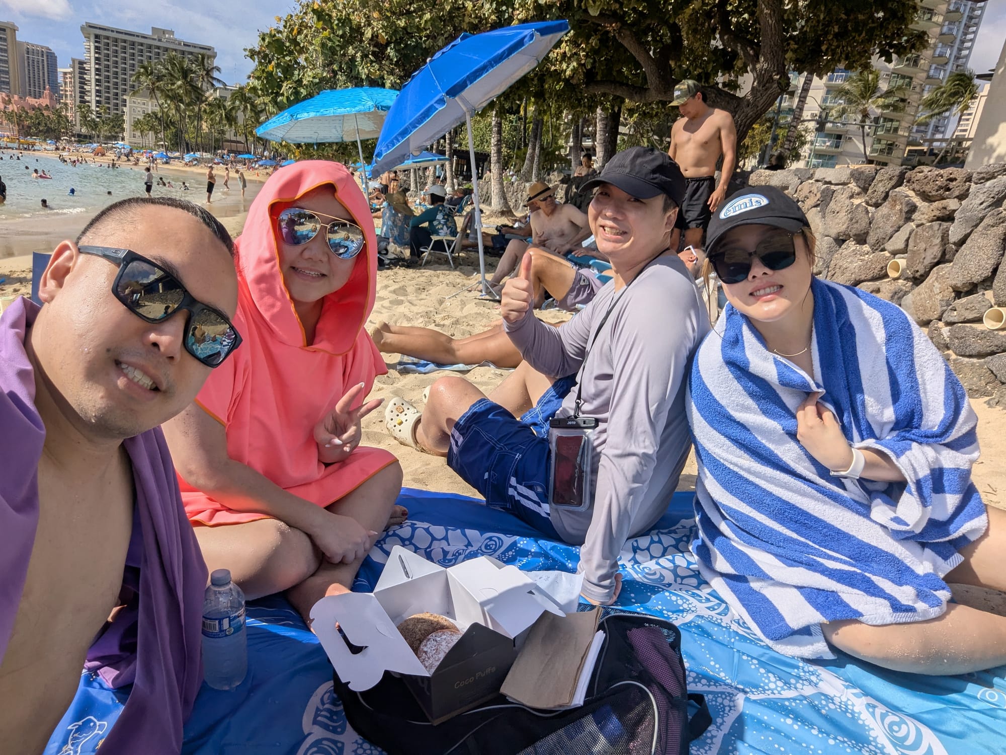 And just as we mentioned his name, Michael showed up too! Surprisingly, we didn’t have any group pics while hanging out in the water. None until we went back to the sand, to enjoy the malasada