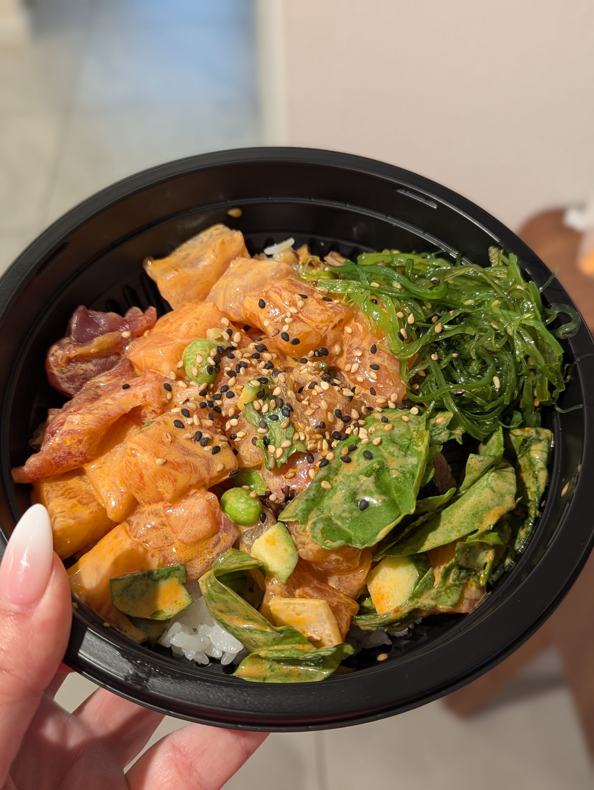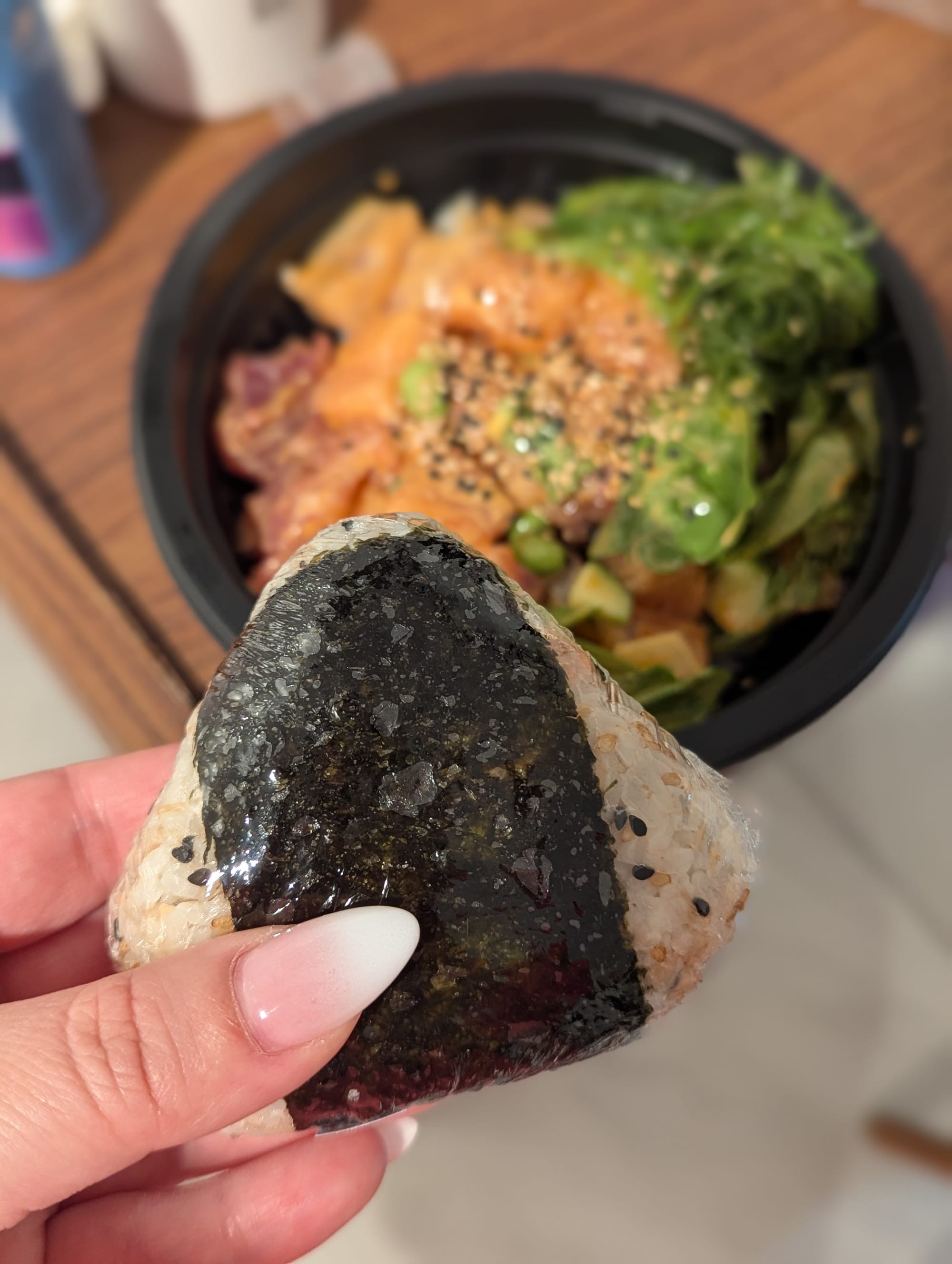 Tonight, we had a pretty early reservation for dinner. So after hanging out for a bit longer, we disbanded back to our hotels, so we could shower and get ready for dinner. As we walked back to our hotel though, we saw Maguro Spot was open, and with a good crowd. Naturally, we had to try it. Fortunately, we heard the person in front ask to substitute with sushi rice. We did the same, and this was the best rice we had the entire week! The also had a special on salmon onigiri’s, so we grabbed one of those too