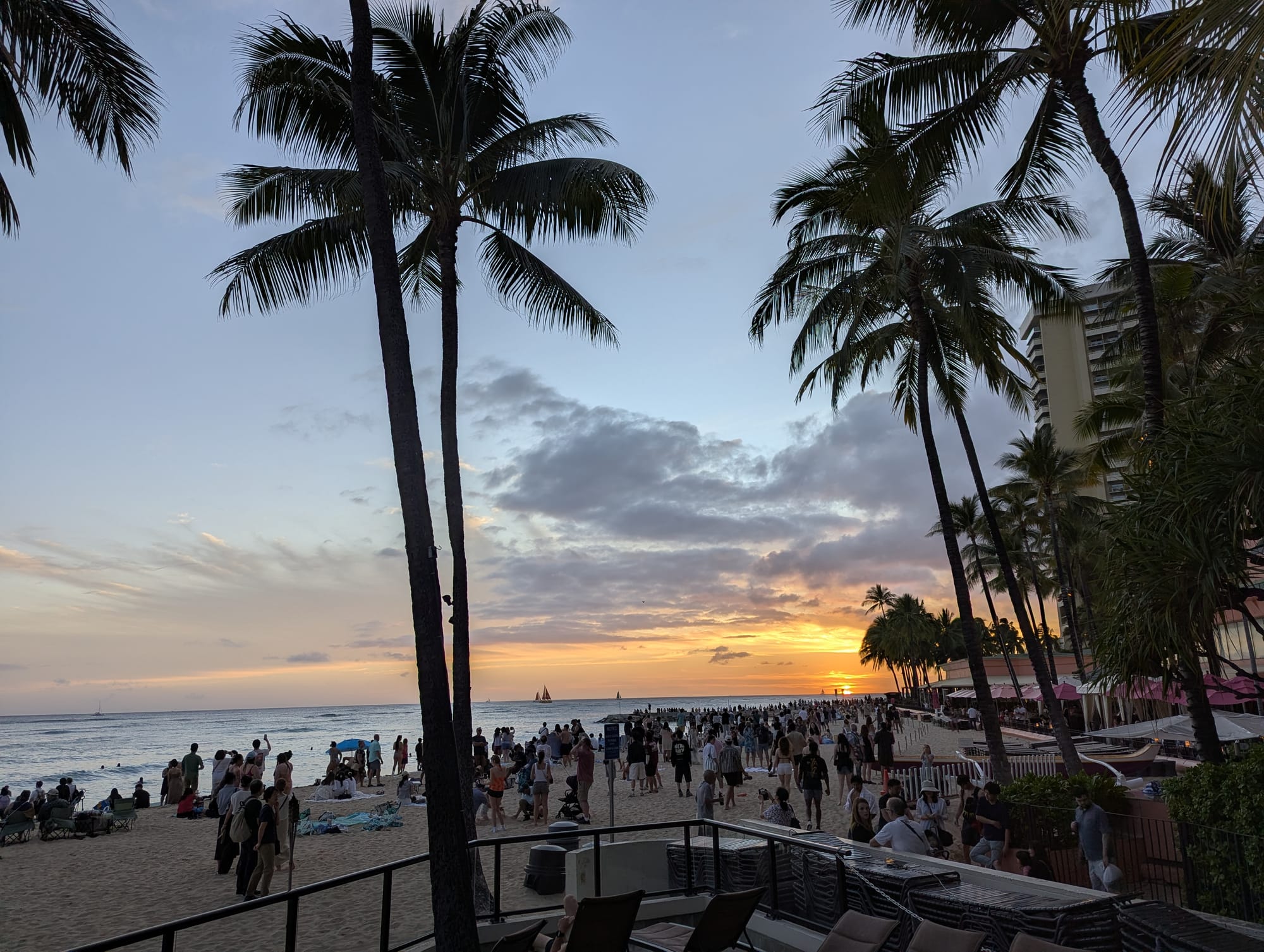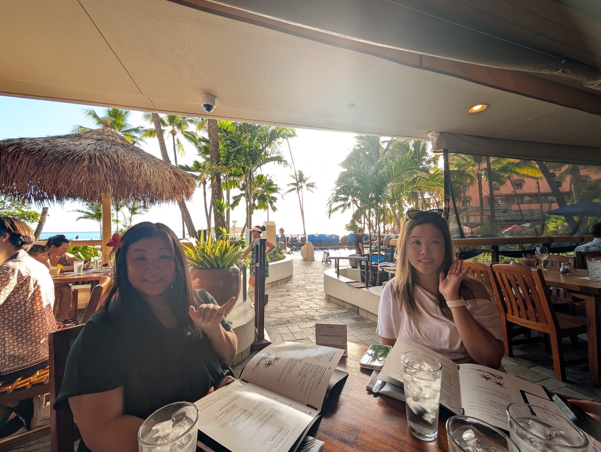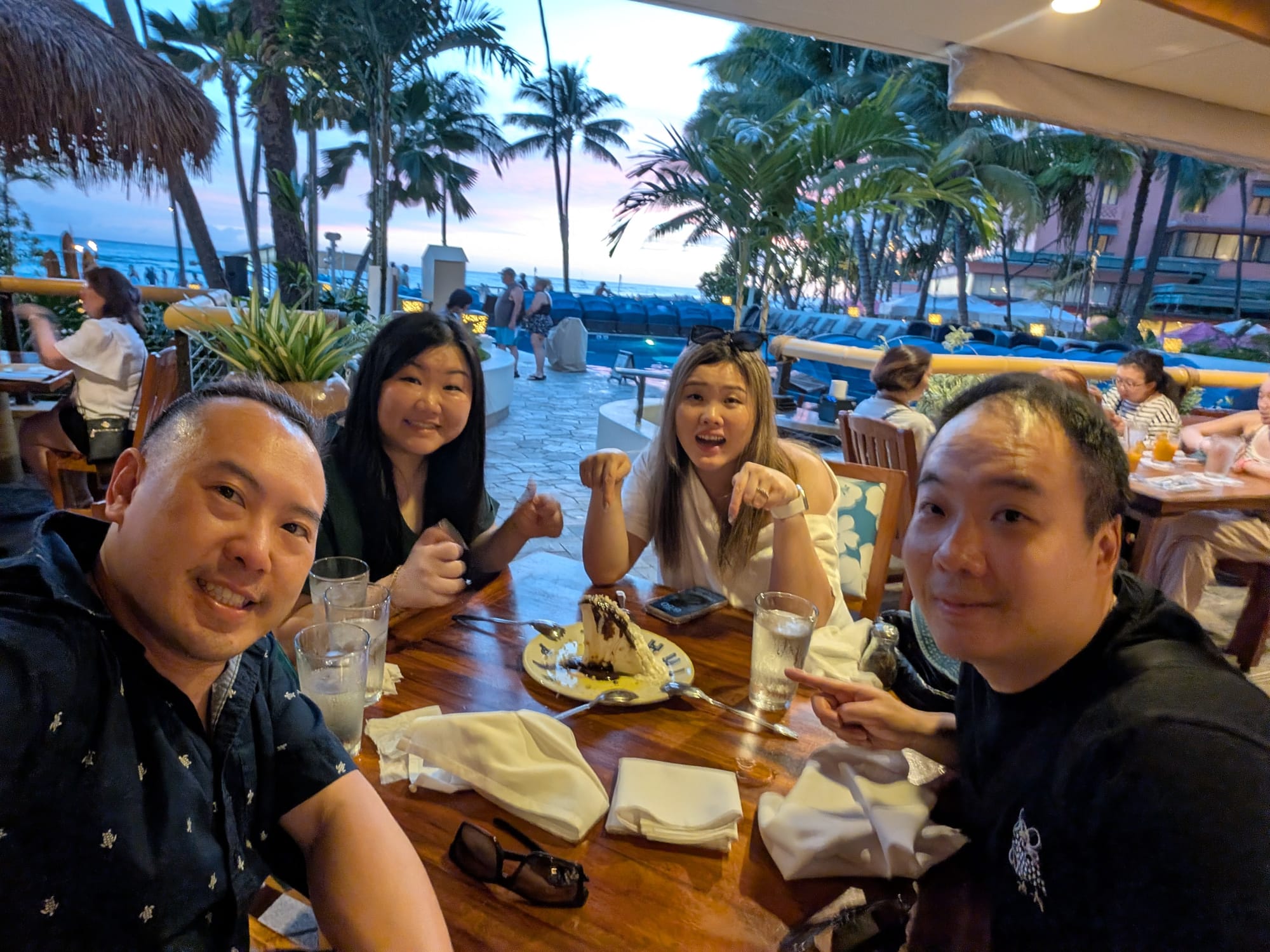 The poke bowl was fantastic! Fish was fresh, and the sushi rice makes the biggest difference. The onigiri though, was the typical hawaiian rice. Could’ve passed on it. After showering and getting ready, off to dinner at Duke’s Canoe Club. This Is a heavily recommended spot, and very difficult to get reservations for. The restaurant is located on Waikiki Beach, and has a wonderful view of the sunset. In order to watch the sunset, we got a 5pm reservation to make sure we don’t miss it. We also got a fantastic table to watch the sunset.
