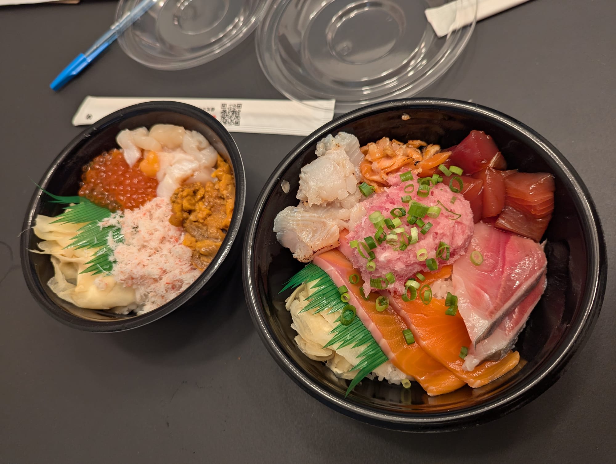 Last full day in Tokyo today. That meant a lot of shopping to make sure we bought everything that we were looking for. We decided to try some local lunch spots near our AirBnb. We saw a bunch of business men lining up here, so thought we’d give it a try too. It was close enough, So we brought the food back to our AirBnb to eat