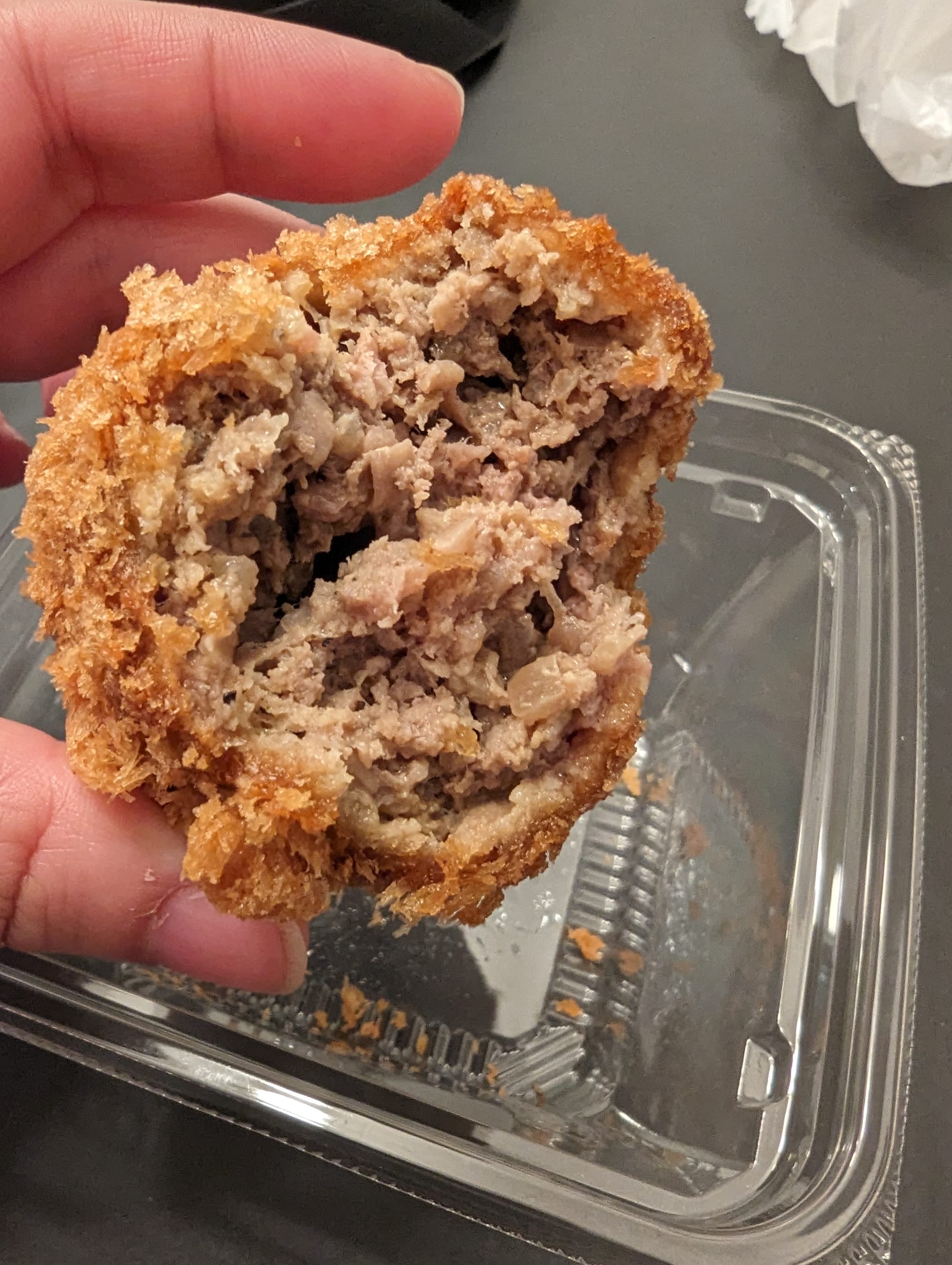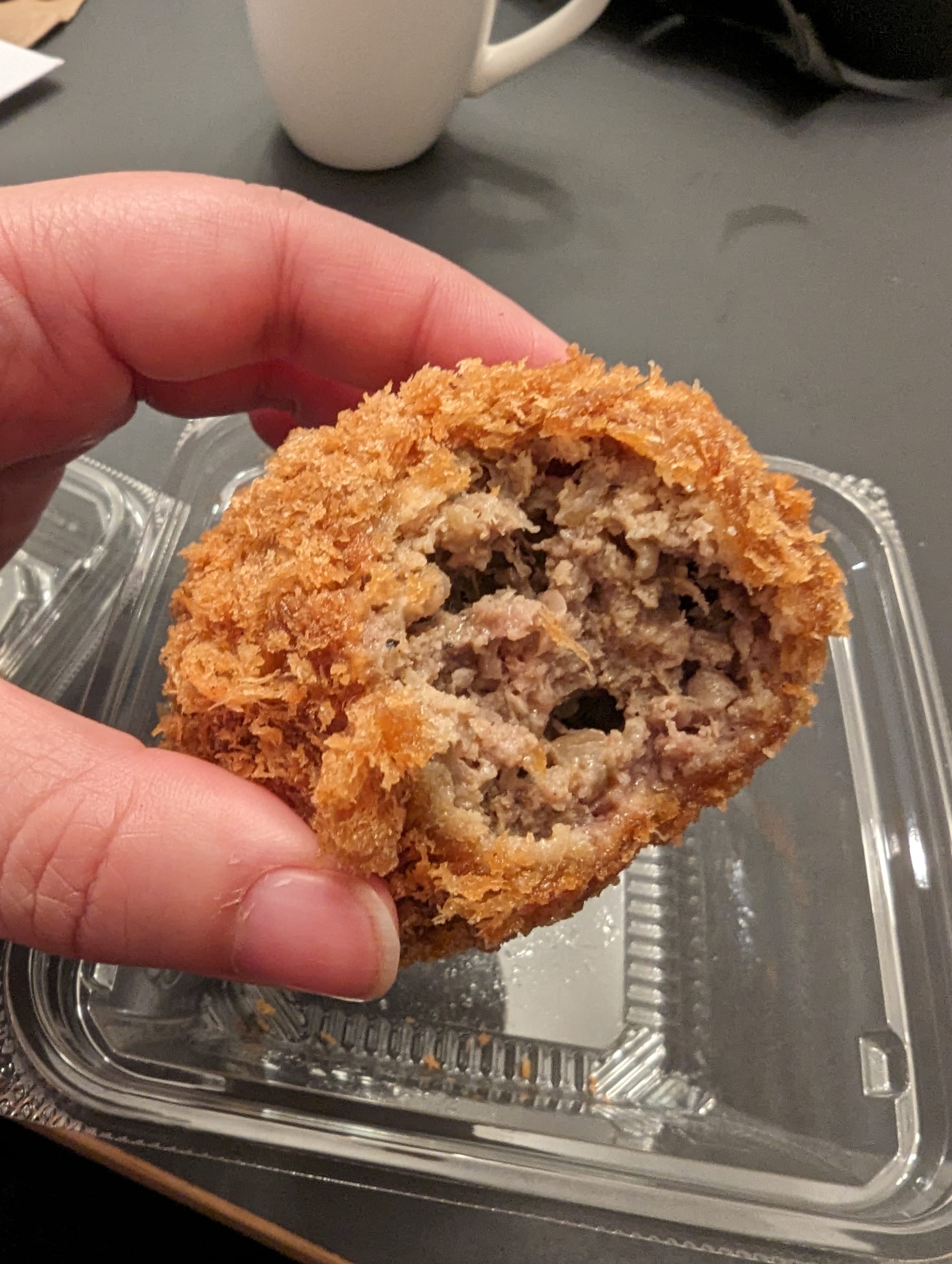 Priced well, so fresh, and delicious! Love eating in Japan 😝. We didn’t have many pictures from this afternoon, as it was mainly shopping. We did however, try this croquette. Wasn’t great.