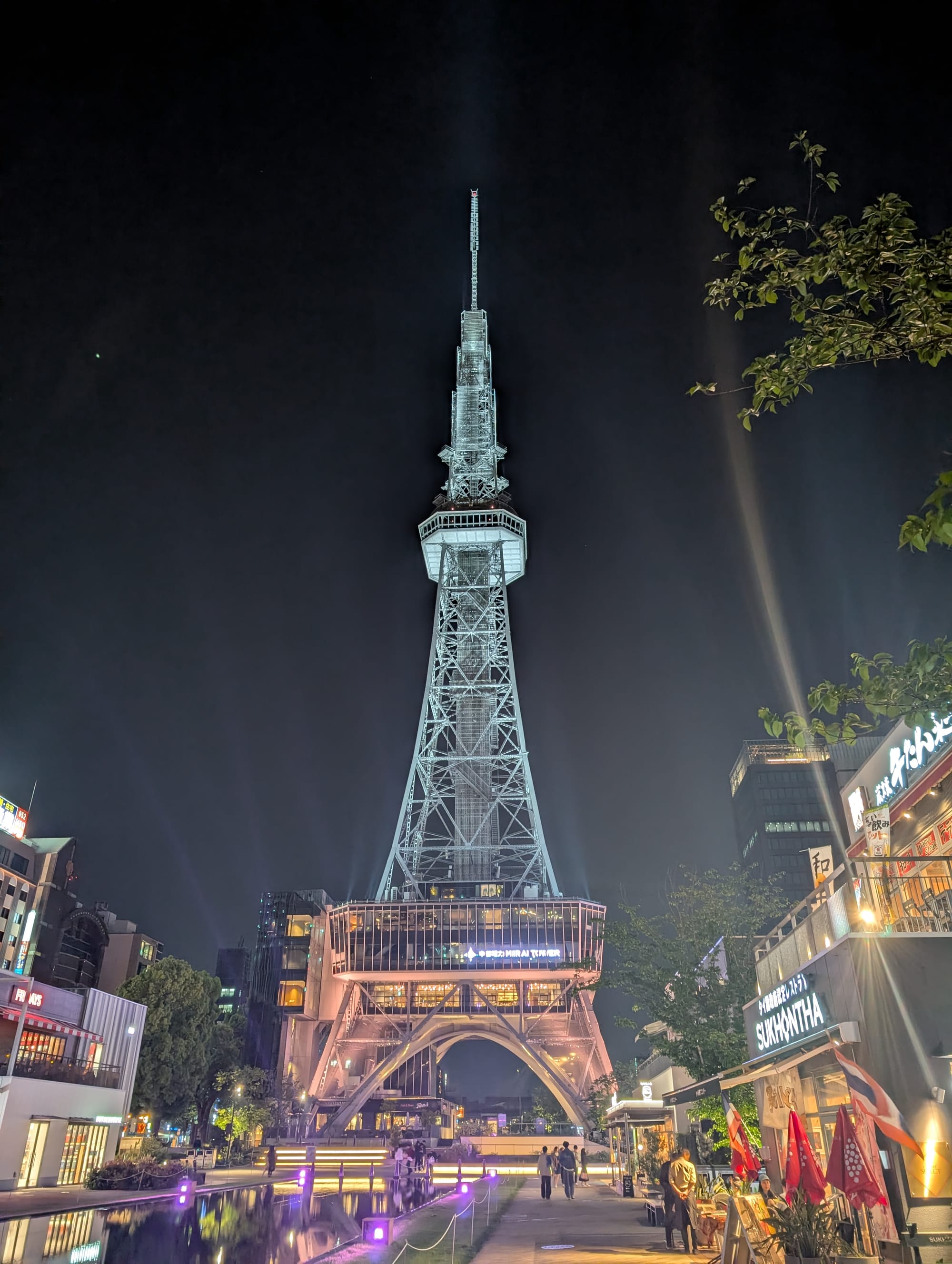 On the walk home, we got the chance to see the Nagoya tower at night, up close