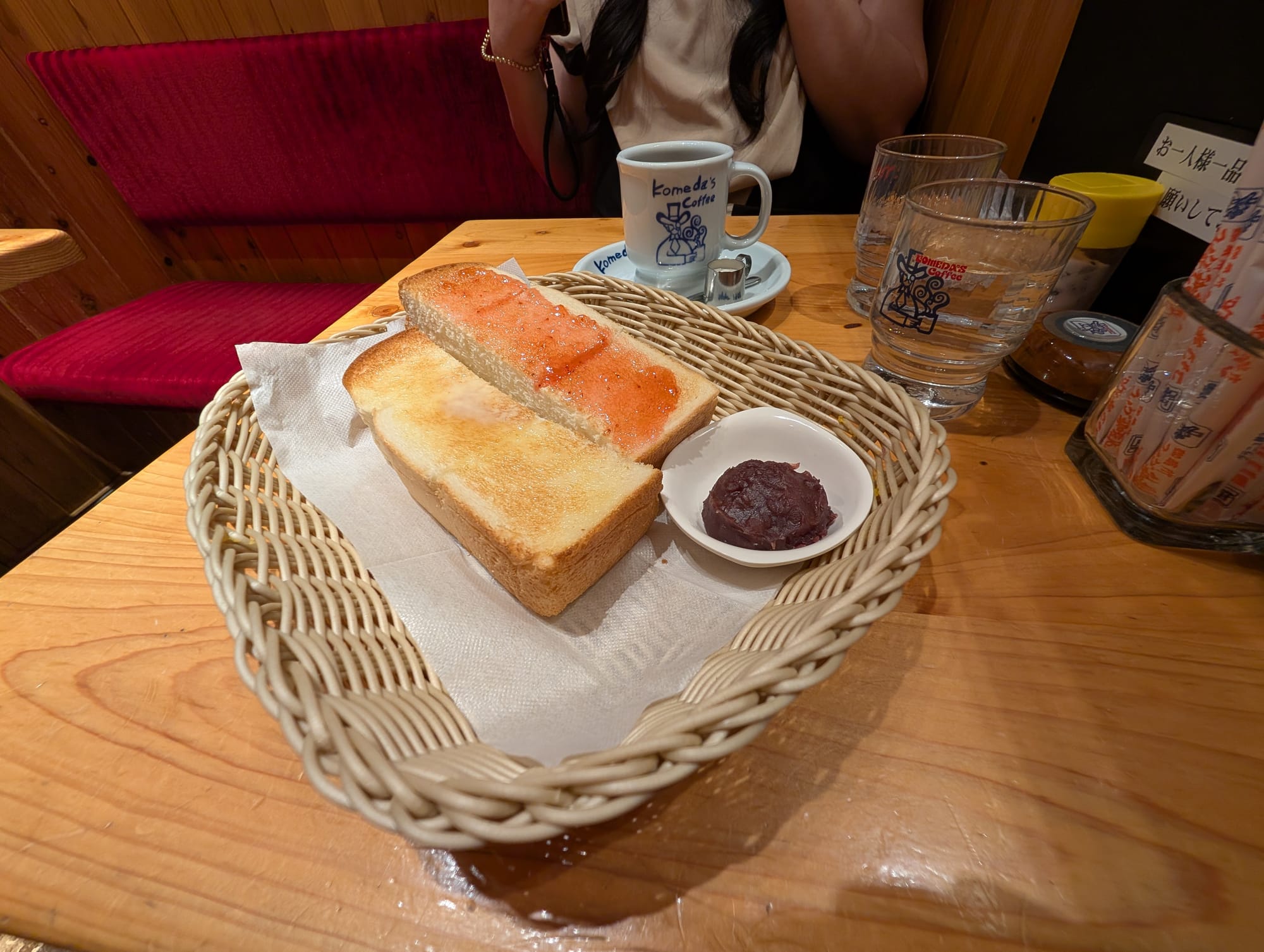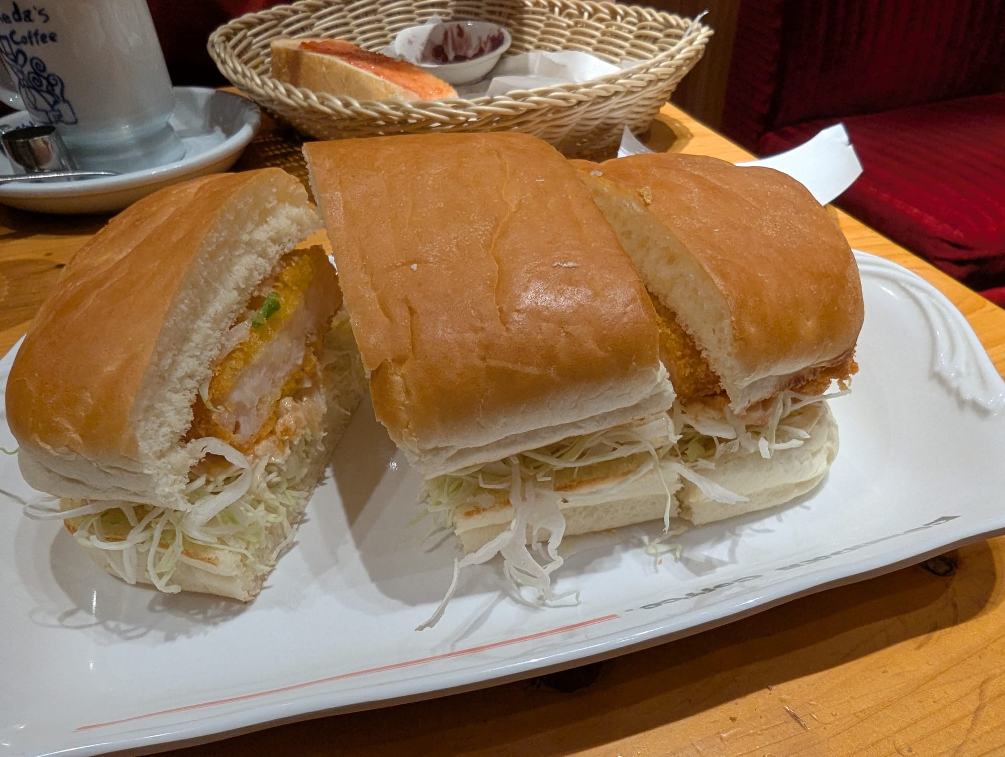 Although today is a travel day, we decided to get up early to try out a Nagoya style breakfast. No where fancy, but a local chain called Komeya Cafe. For breakfast, we each got a drink, along with a toast done 2 ways with red bean, and a shrimp cutlet sandwich. Great way to start the day.