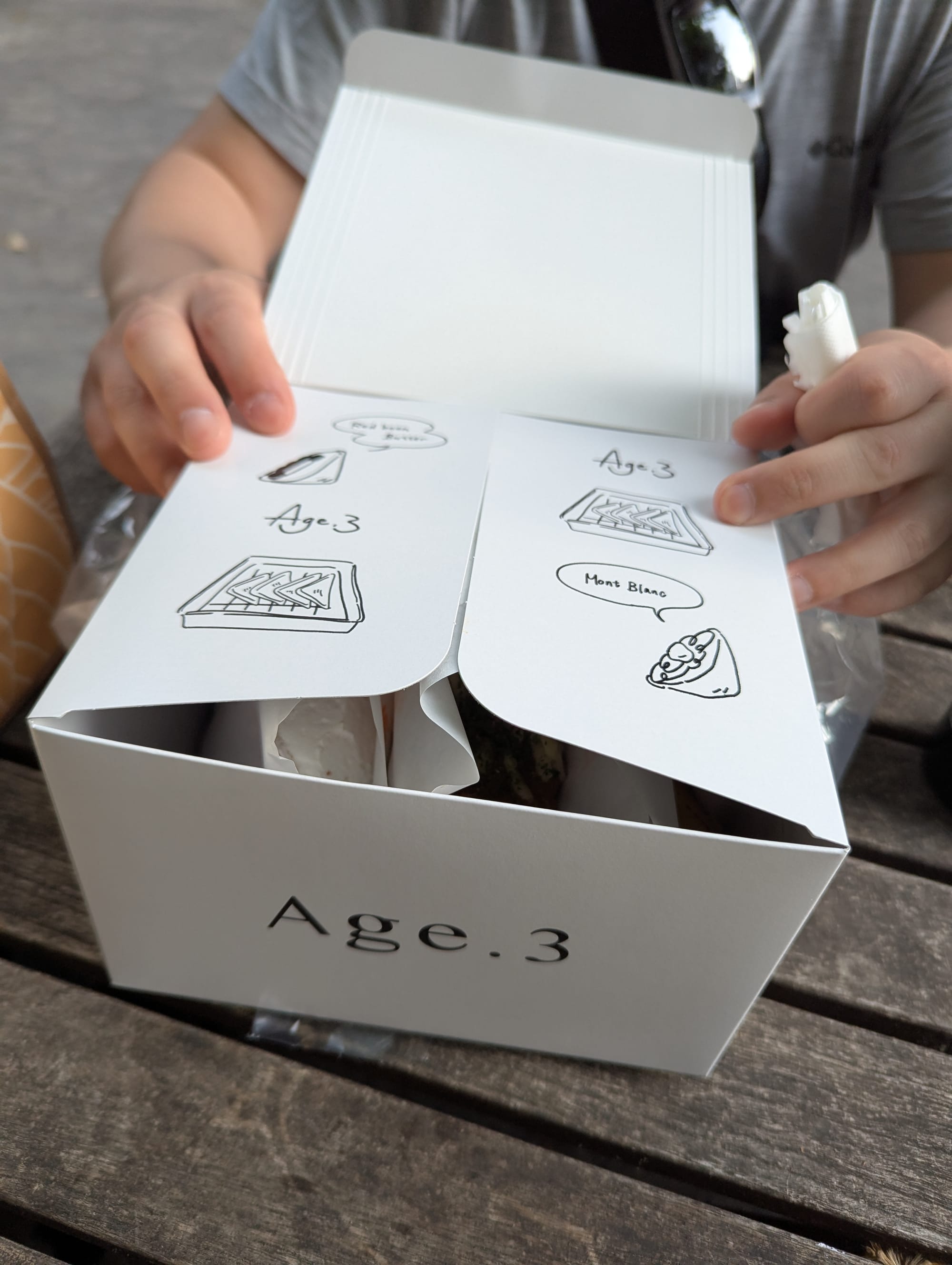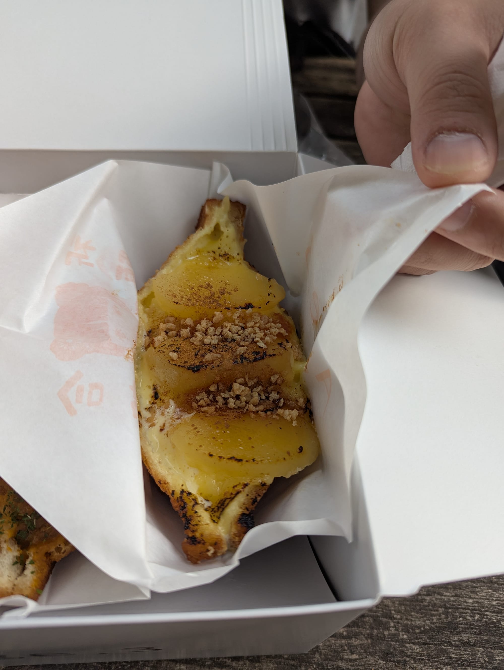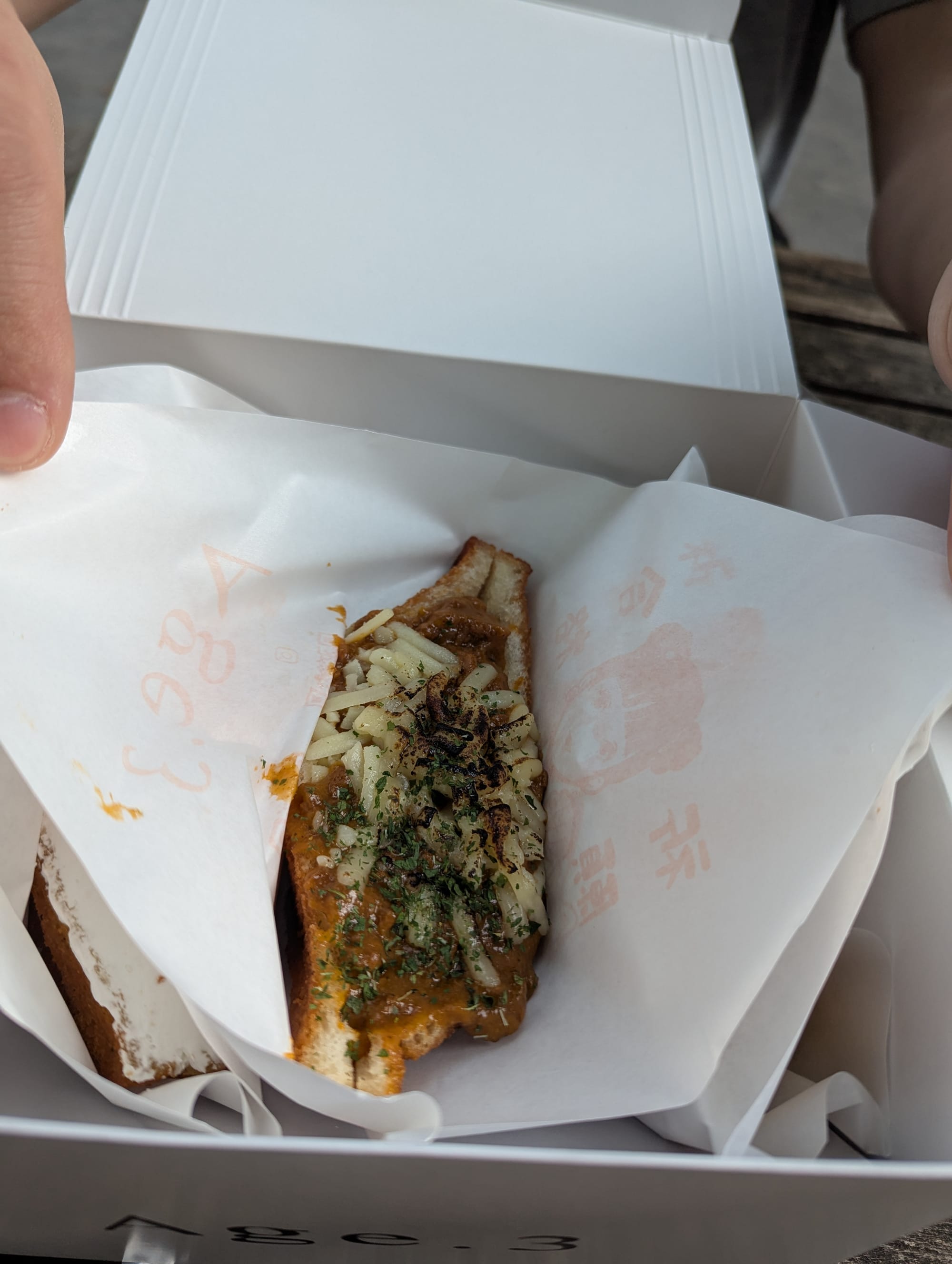 Next up, Age 3. Here, this is a small sandwich shop where they pre-fry the bread, and then stuff it with your choice of filling. They serve both sweet and savoury options, and so we tried. We opted to get 3 variations; Cream, Curry & Apple Pie. Maybe we were still a bit full from lunch, but the curry just wasn't doing it for us. Jonny enjoyed the apple pie (typical Jonny), and the cream was quite light.