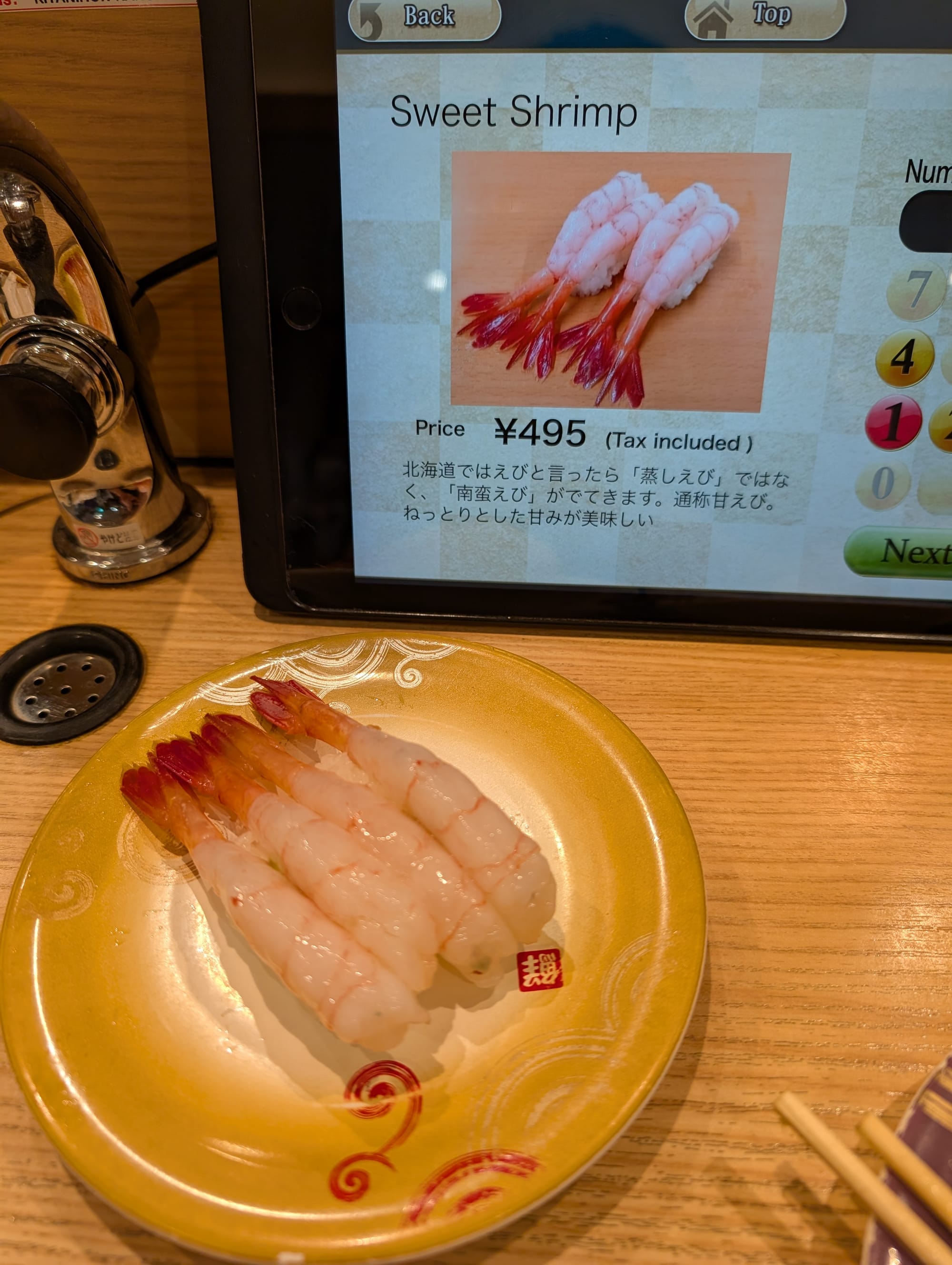 Sadly, our vacation is quickly coming to an end soon. With that, there's a realization that we really haven't started doing much of our Japan shopping yet. First thing though, lunch! We decided to try out a Hokkaido conveyor belt sushi place. We went to the restaurant and grabbed our number, only to realize that there were over 100 people ahead of us in the queue. Thankfully, many restaurants in Tokyo now, allow you to check your position in the queue online. So we took this opportunity to start our shopping at a nearby Donki. 3+ hours later, we finally got our table.