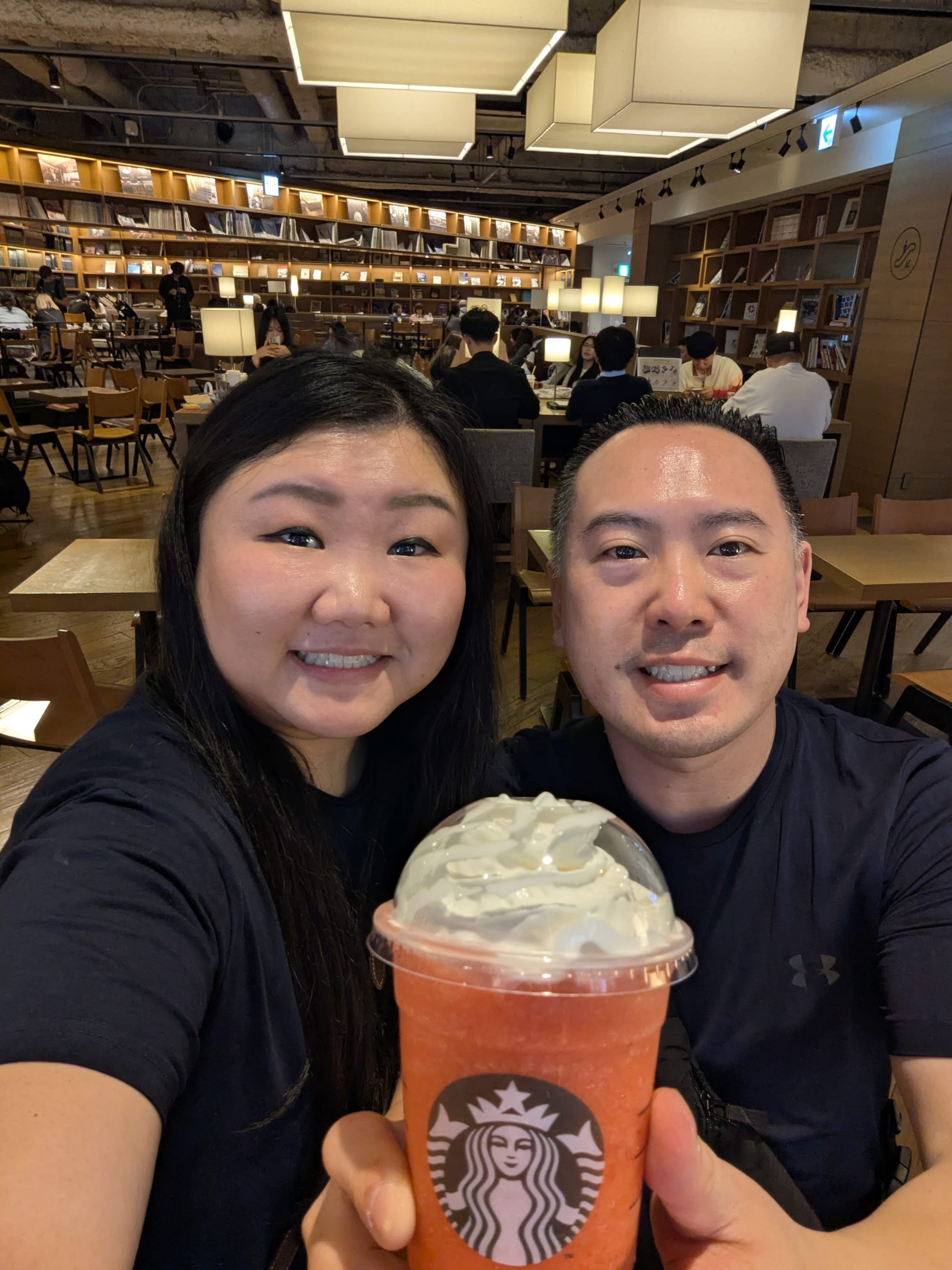We then walked around Dotomburi a bit, before deciding to take a break at Starbucks. We were fortunate to find window seats on the second level. Here, we were able to enjoy our drink (Starbucks signature strawberry drink for the season) while "people watching"