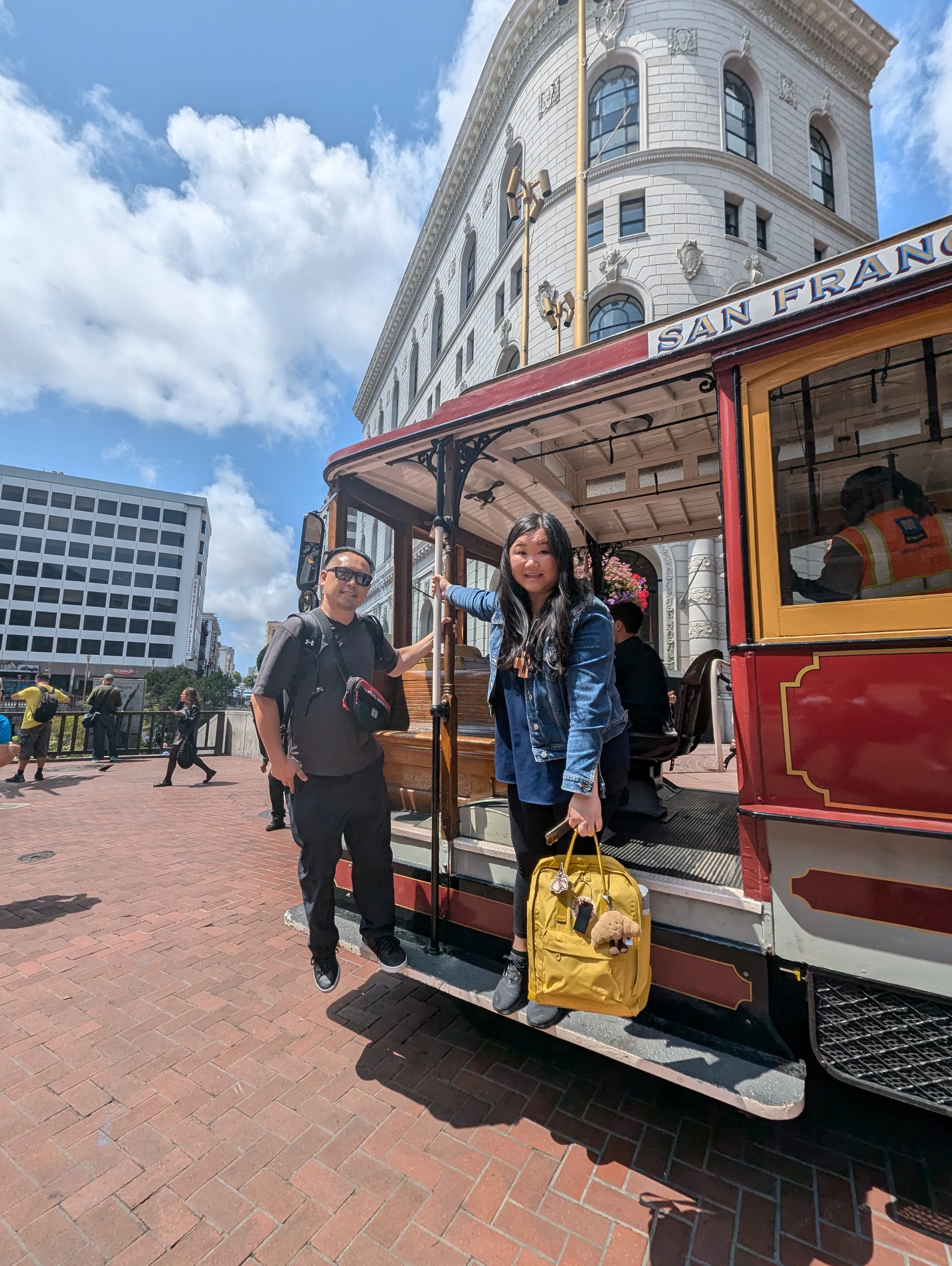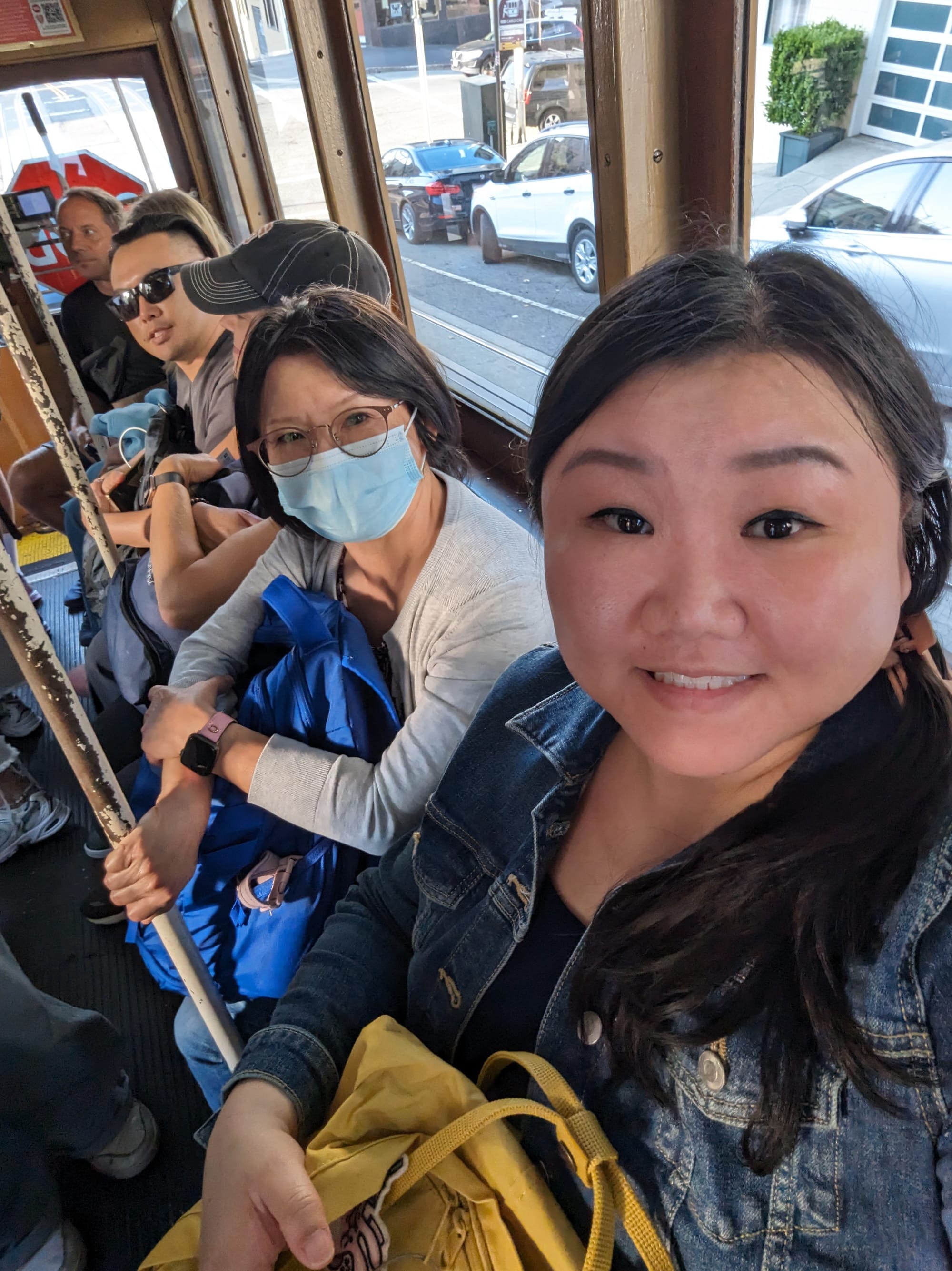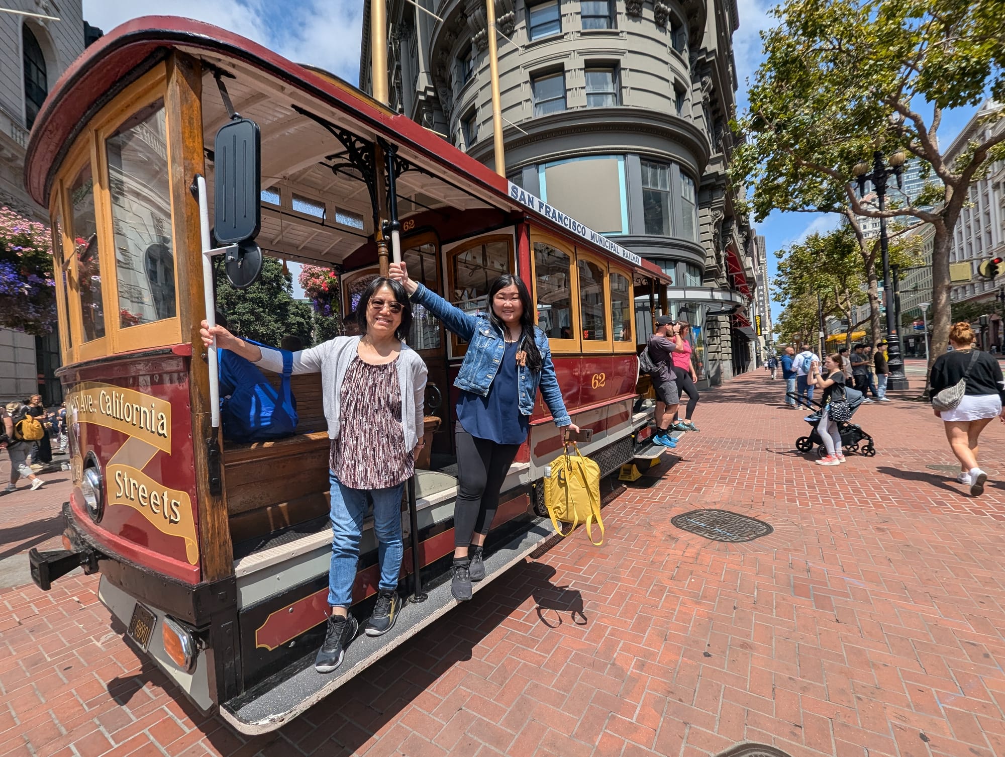 We were looking for our way to the cable cars. There was a length line for the cable car, but we waited it out so mom could get the experience