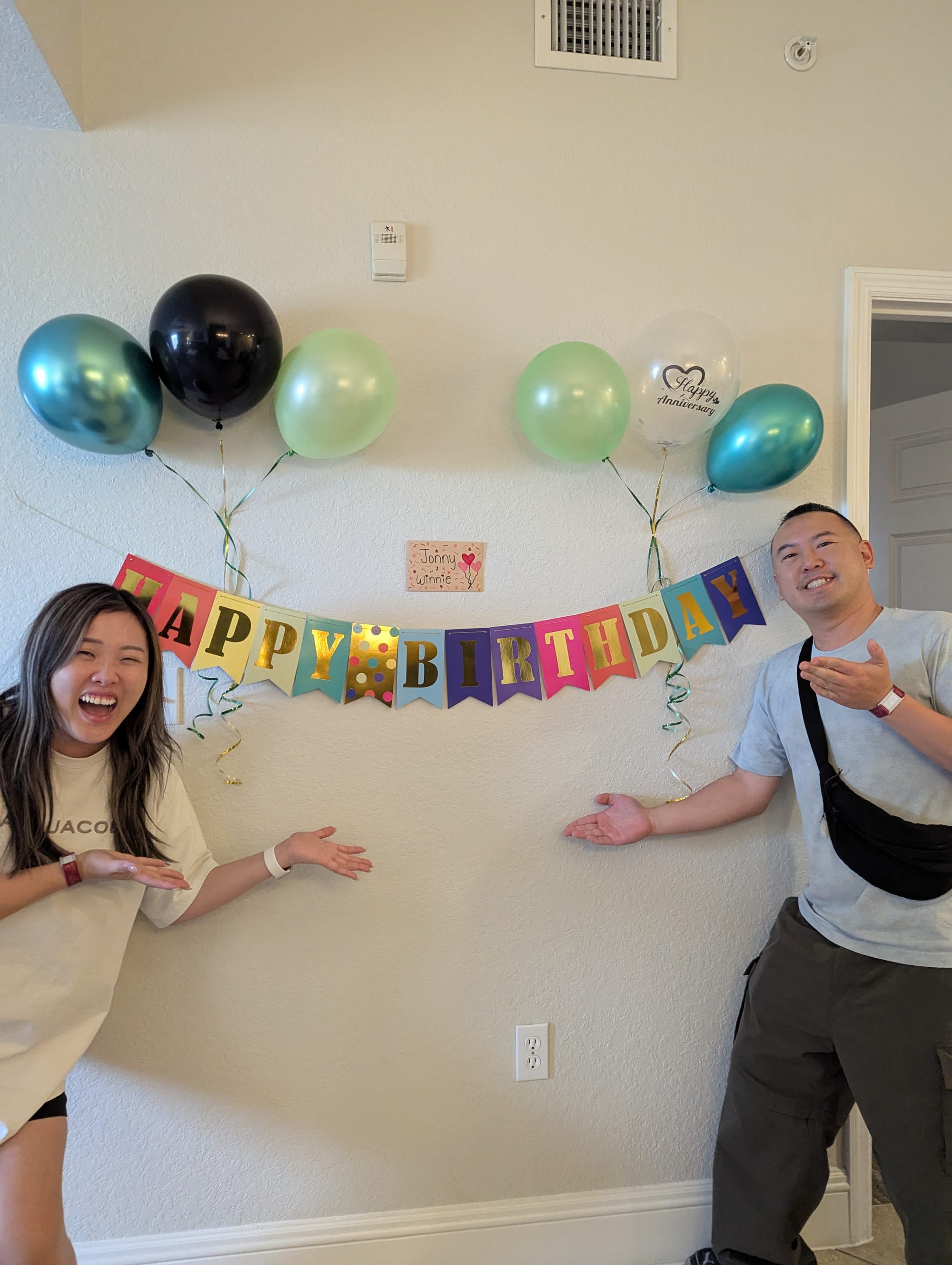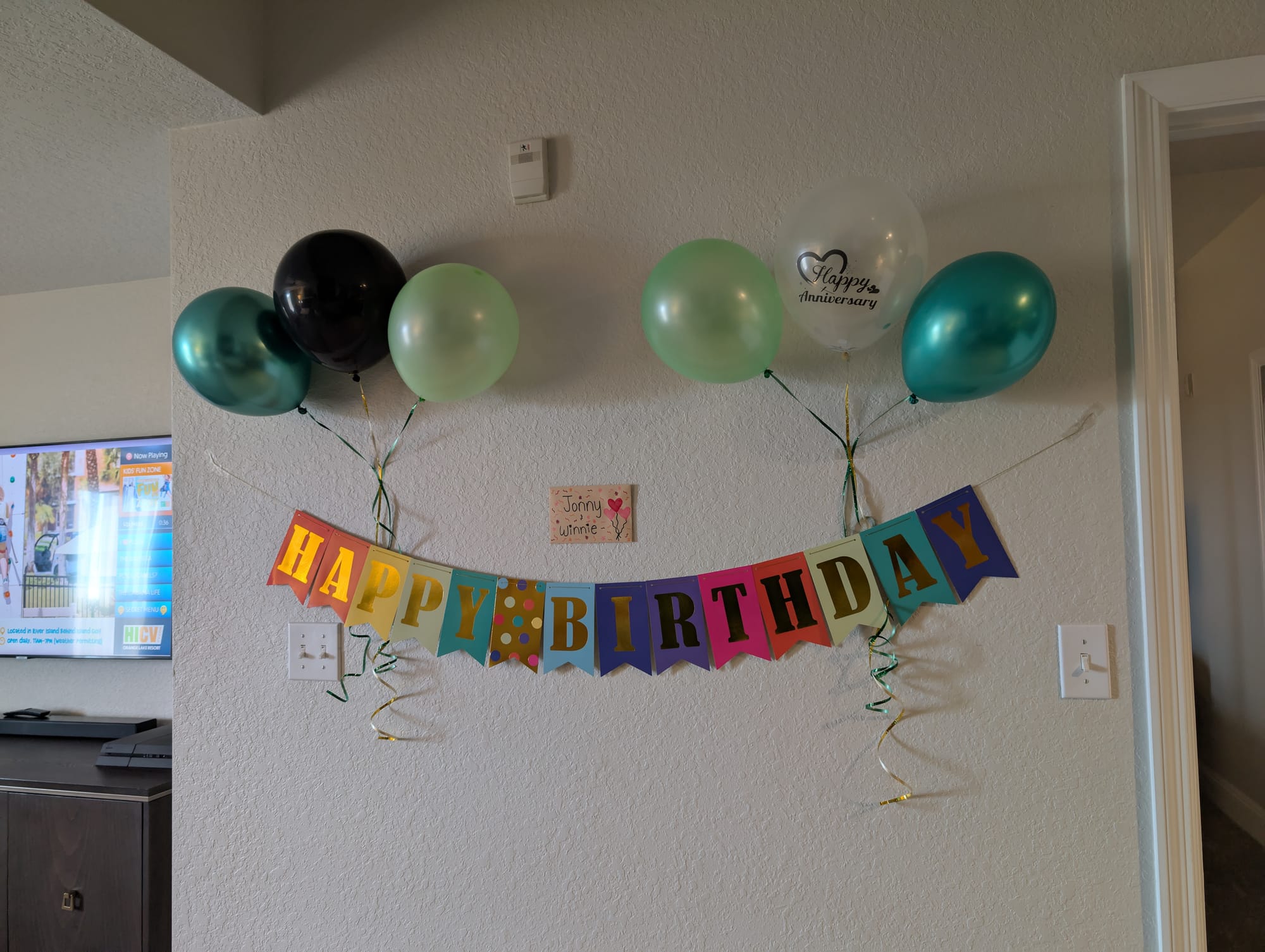 After checking in, we arrive at our room to find the decorations. The signature team decorated for both our birthdays, and anniversary 😄