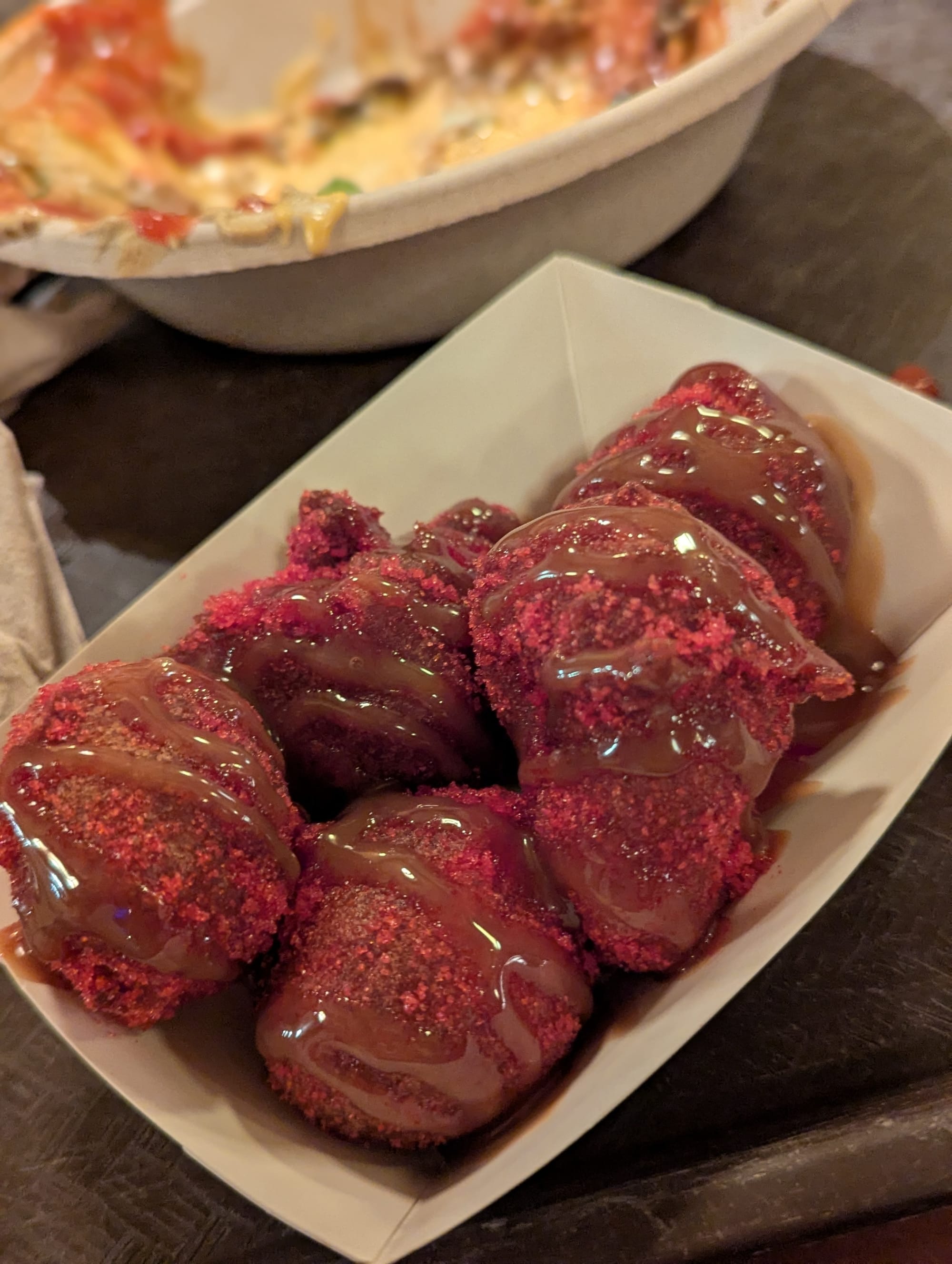 But not before some final snacks. We shared some Haunting Jalapeno Ranch Tots, and Not-So-Poison Apple Donuts