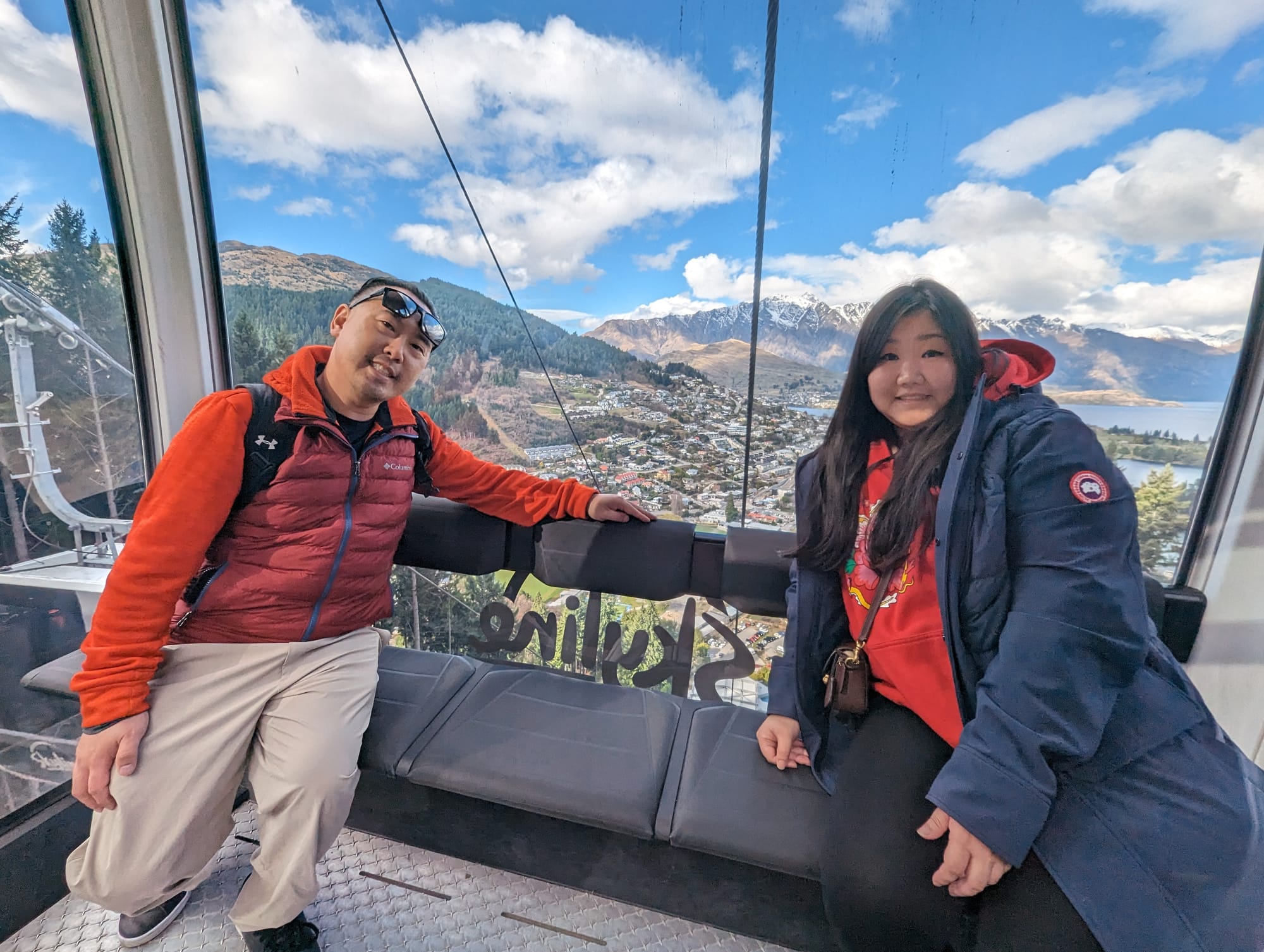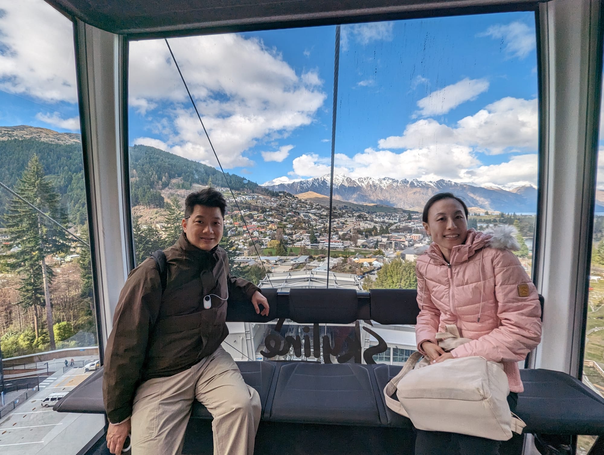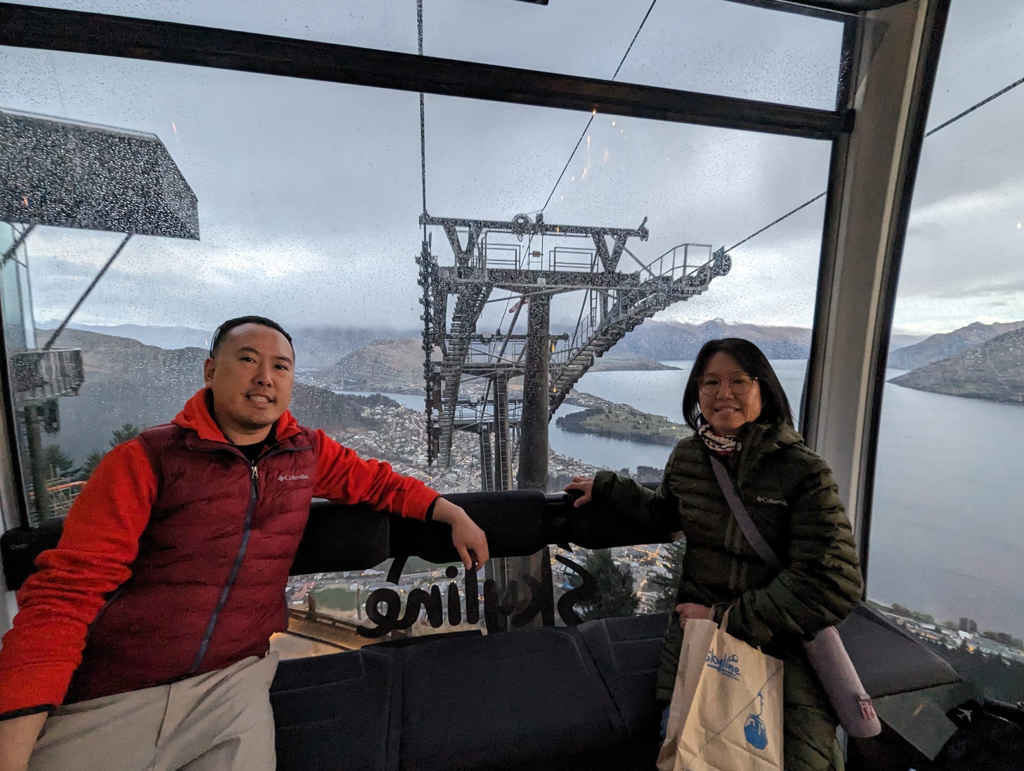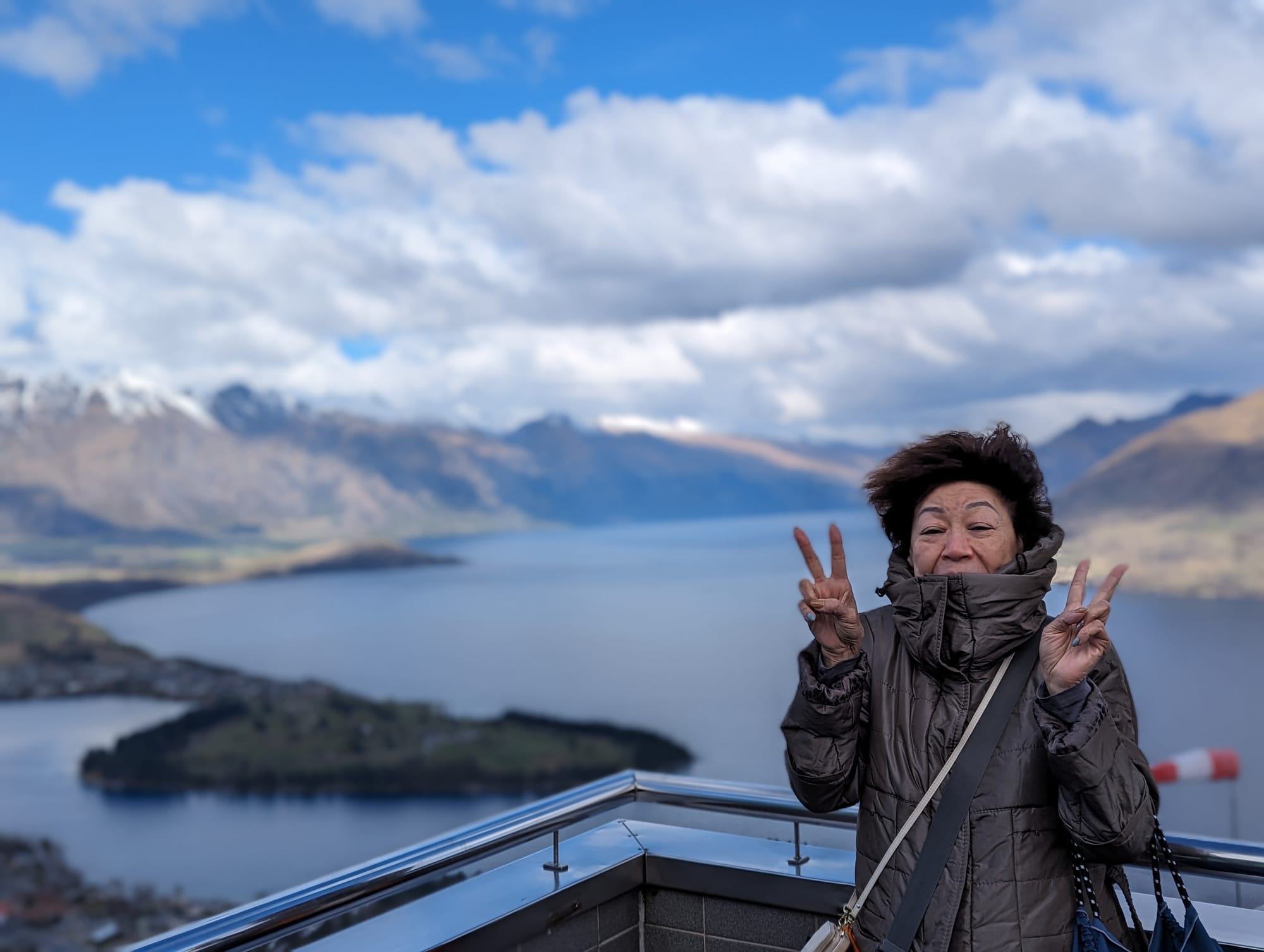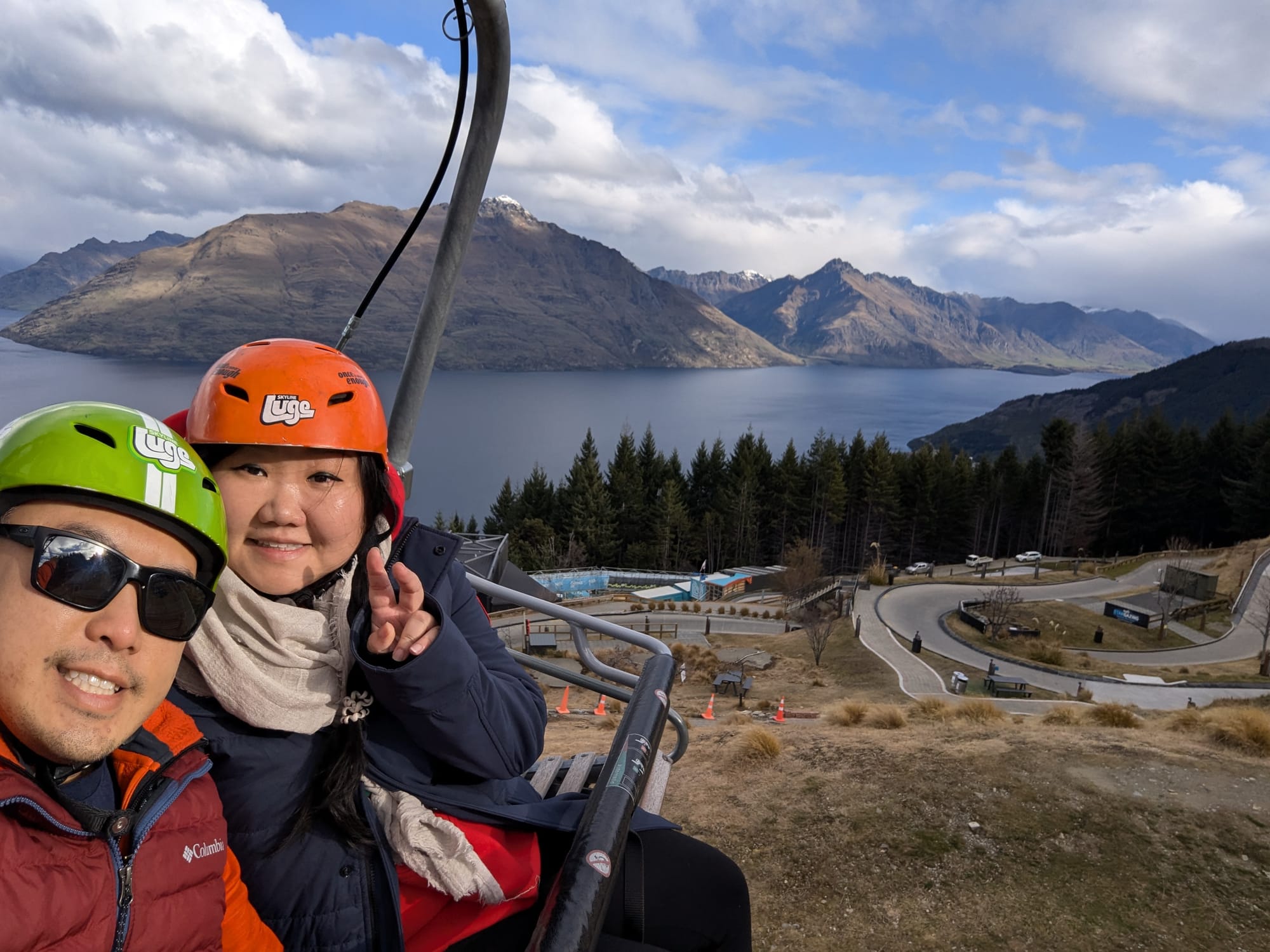 We're headed to the top, so most of us can take part in another activity. It's called the Queenstown Skyline Luge. Mom wasn't taking part in the activity, but we got her to try the virtual version. She looked pretty stressed