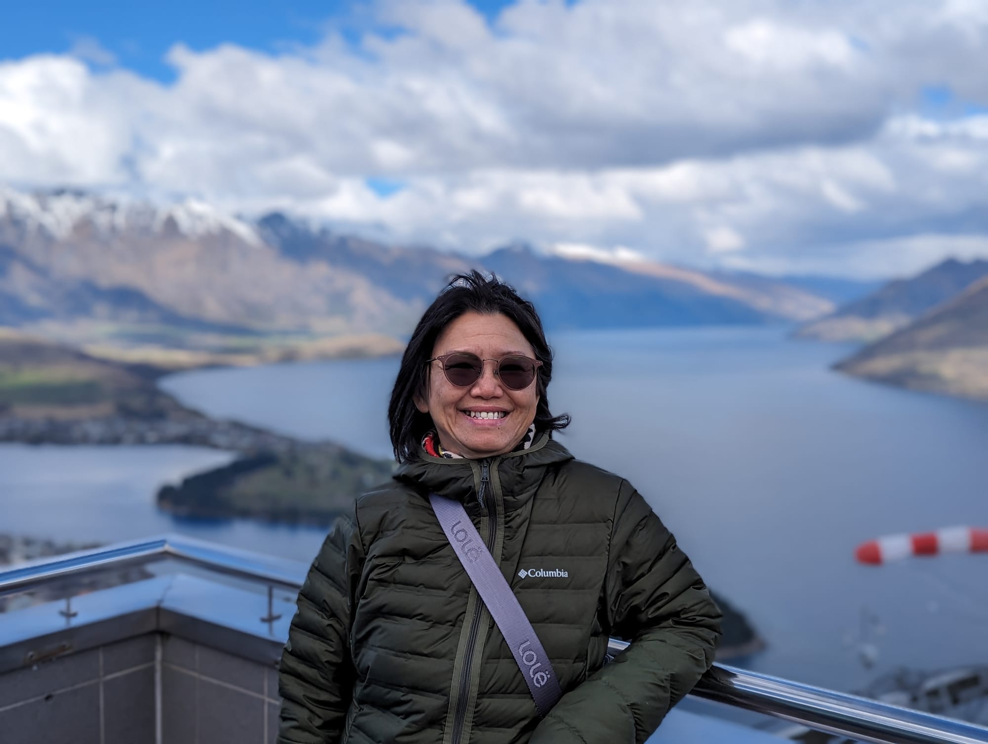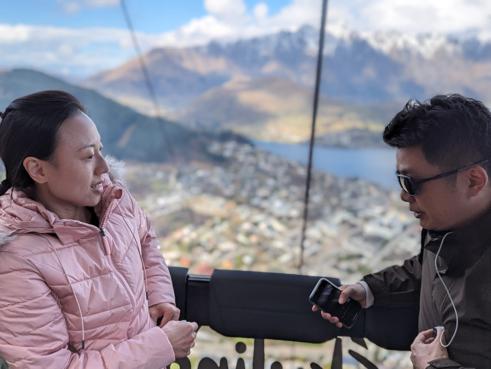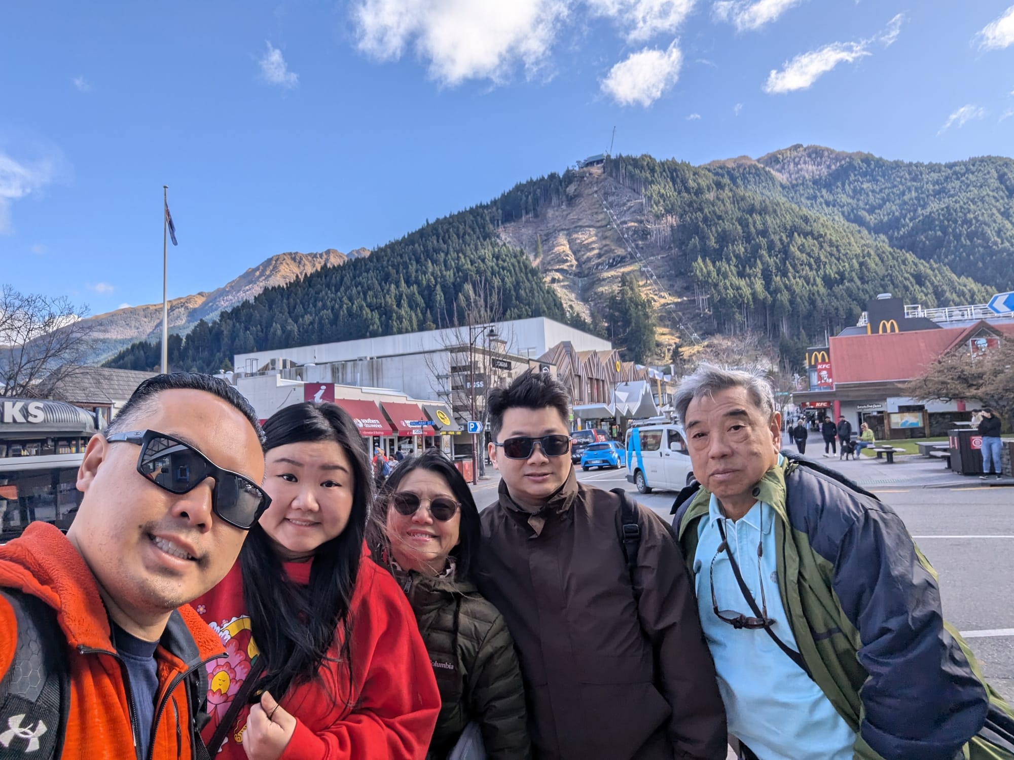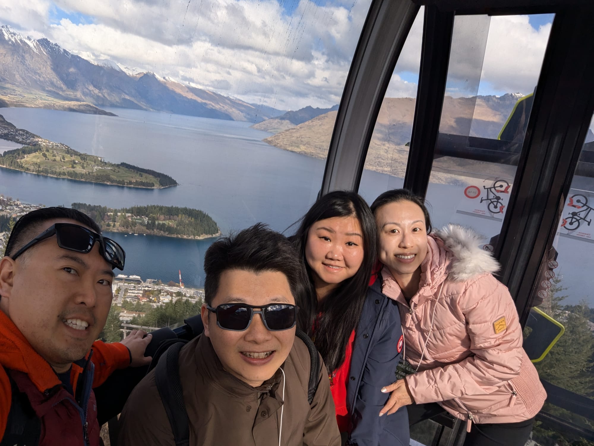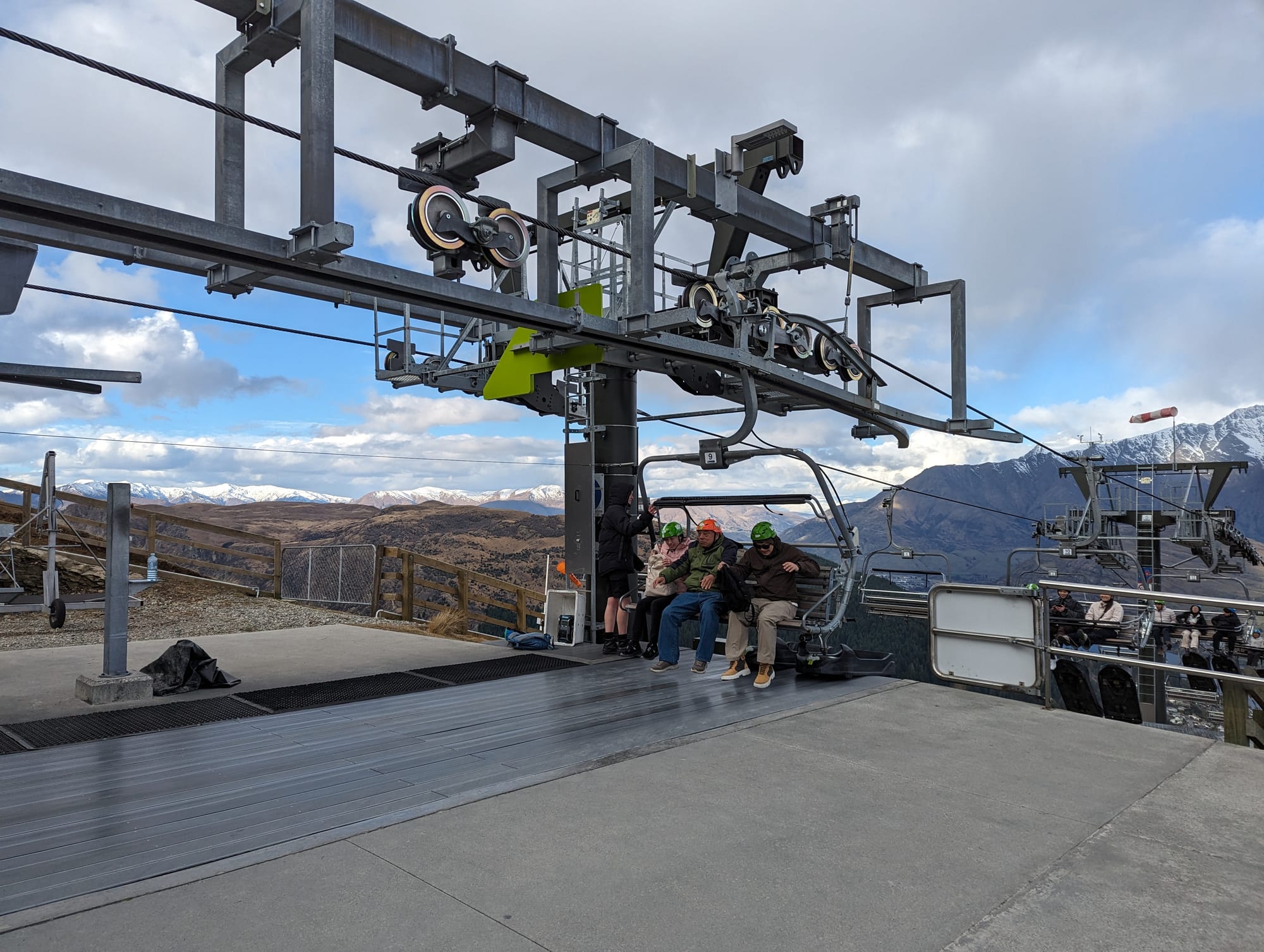 We're headed to the top, so most of us can take part in another activity. It's called the Queenstown Skyline Luge. Mom wasn't taking part in the activity, but we got her to try the virtual version. She looked pretty stressed