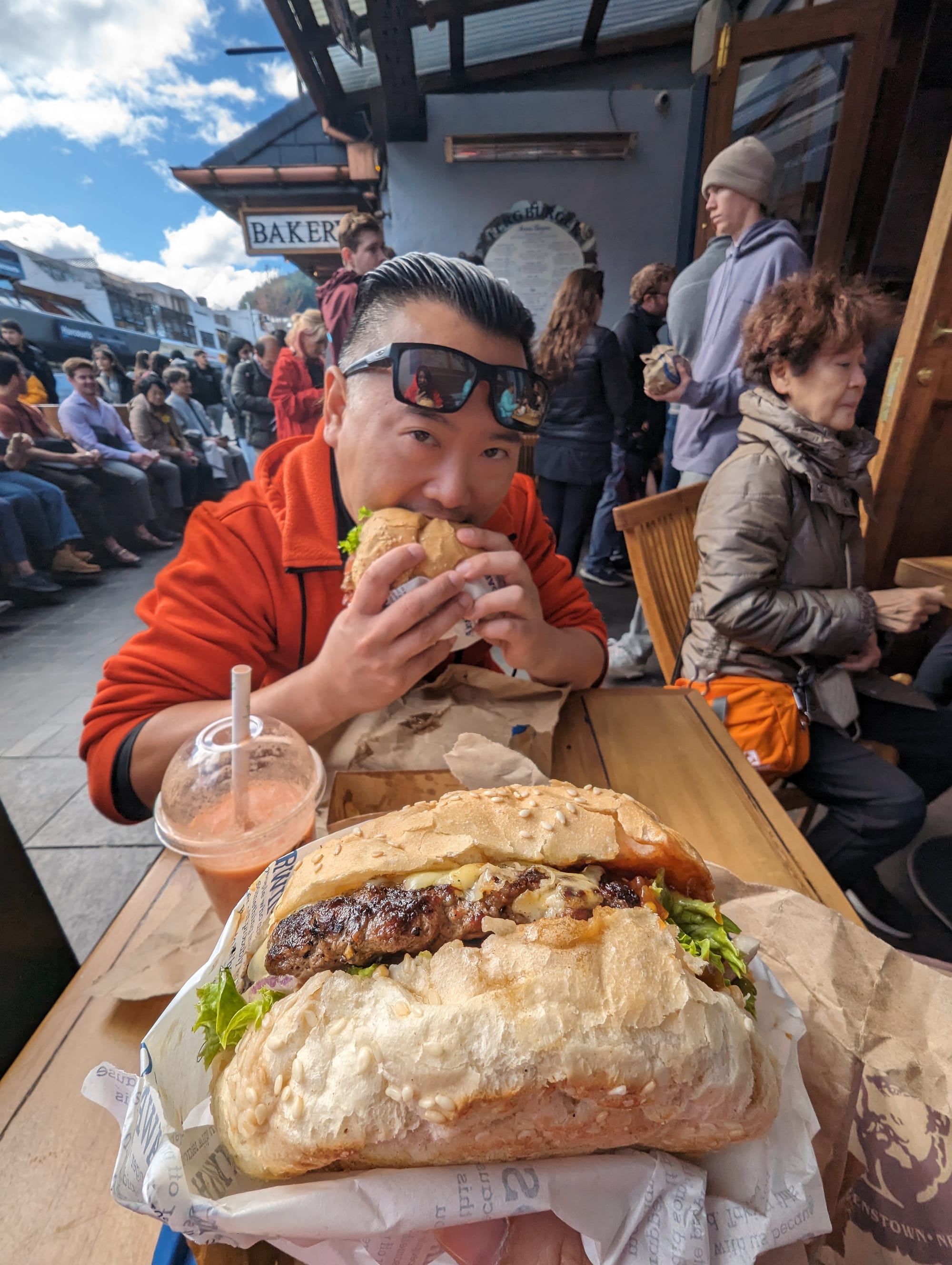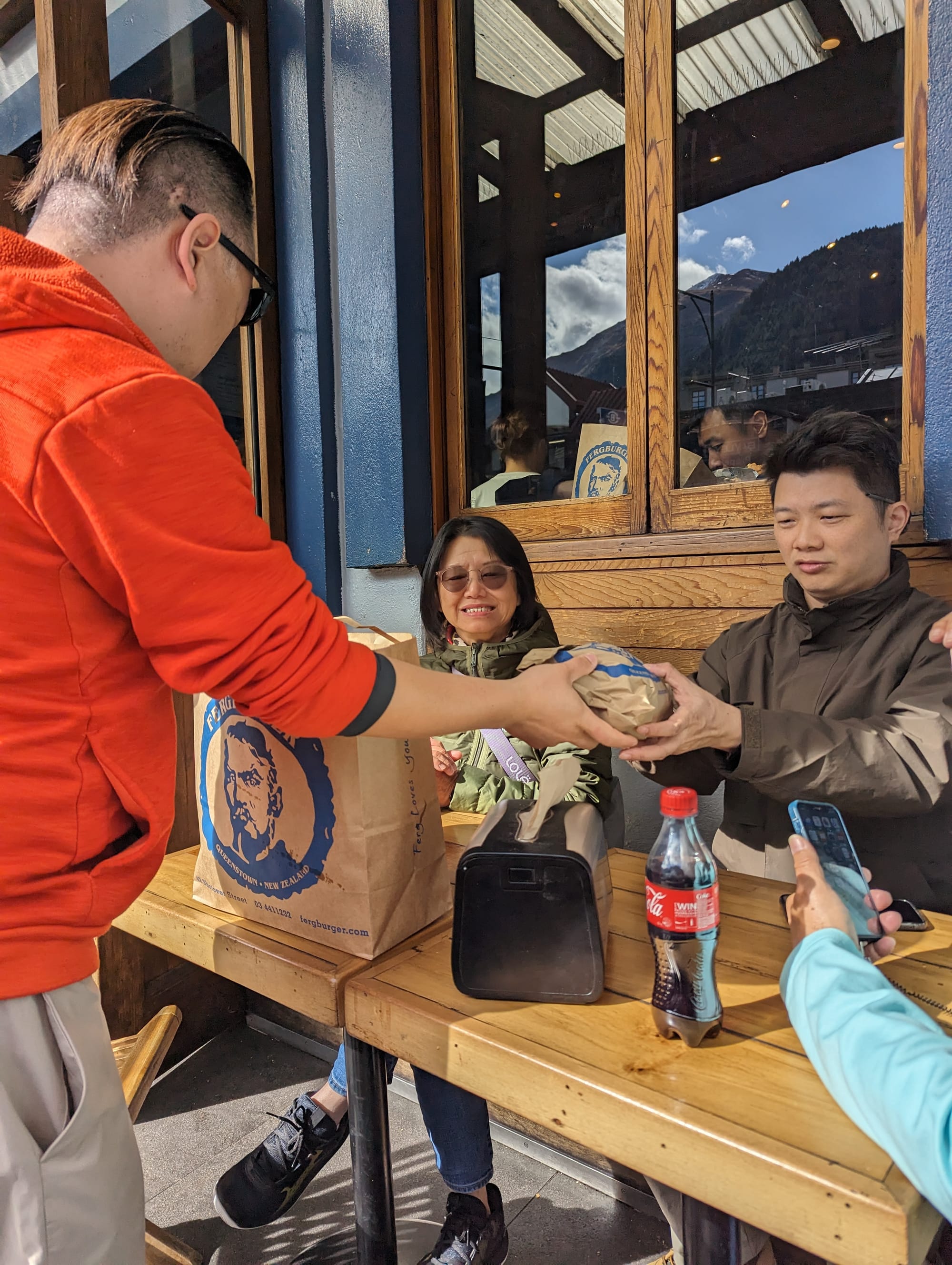 We finally make it to our lunch spot, and we're lucky! The spot is called Fergburger, and it's a pretty popular burger spot in Queenstown. The night before, the line here was crazy! Wasn't too bad for us, maybe 30 mins or so.