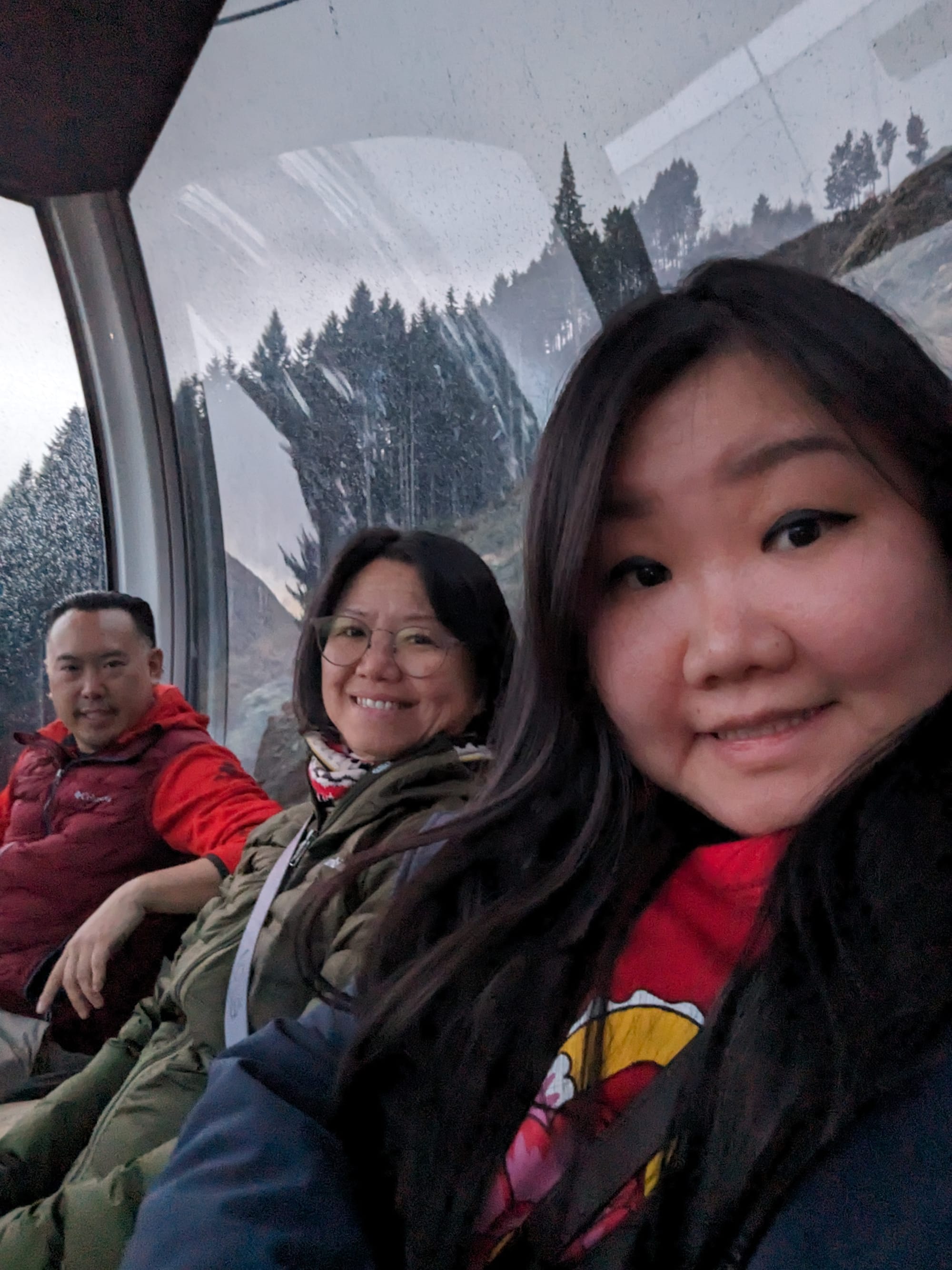 Then started to make our way back down. We took the gondola down with mom this time, so we could take some pics with her too.