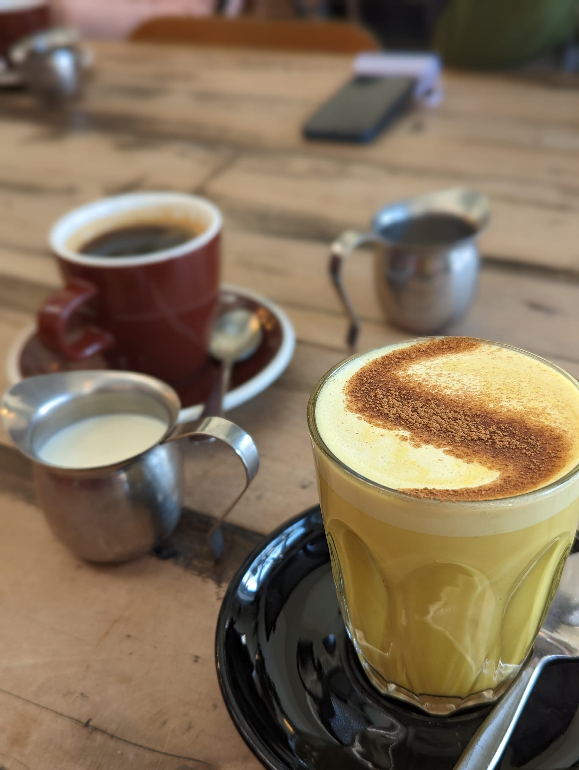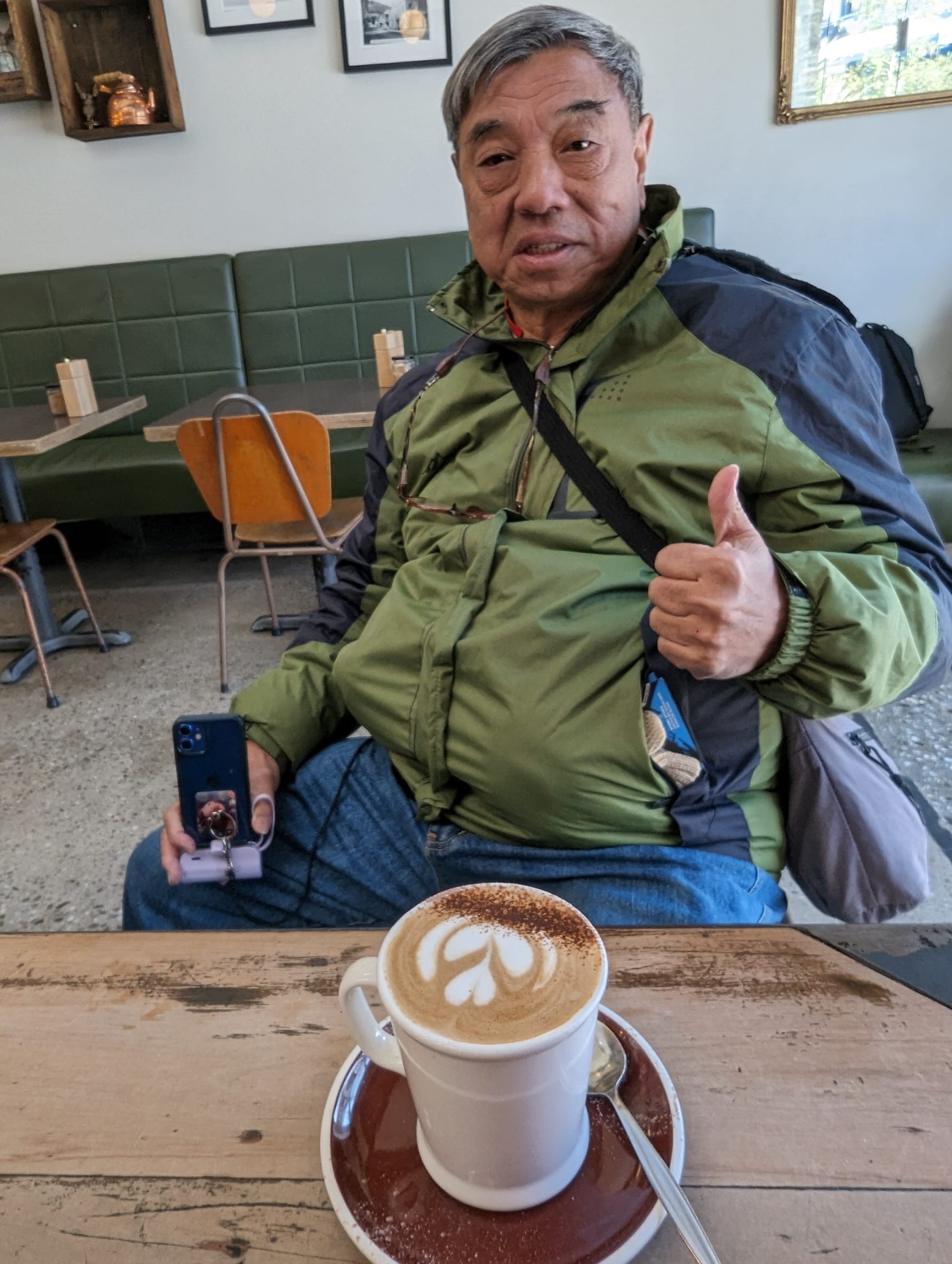 To warm up after the ride, we found a small coffee shop near by. This is were we hung out while waiting for mom and auntie2 to arrive.