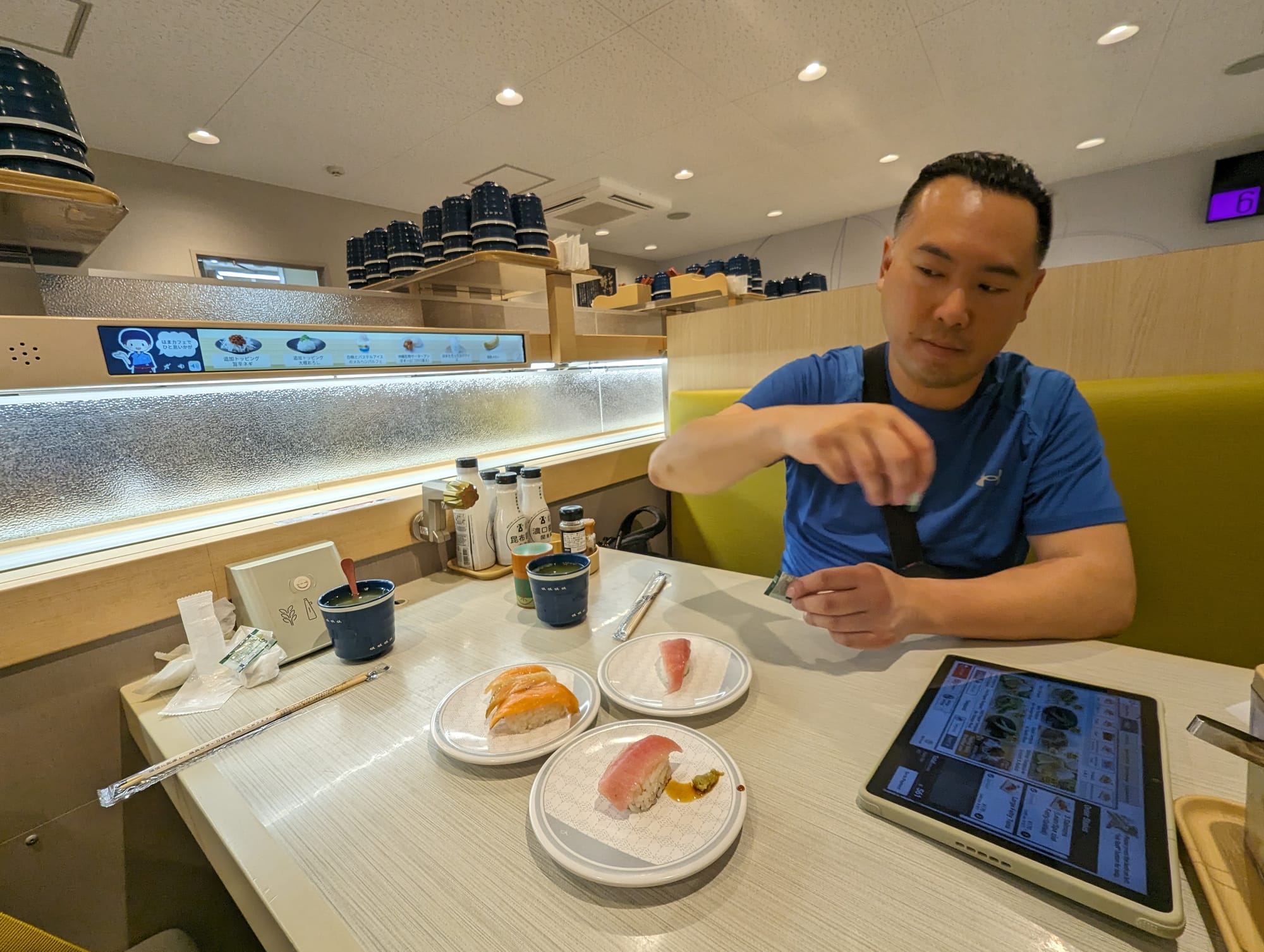 And time to find some dinner! It was pretty late now, and we were in a very quiet area of Tokyo. We saw a conveyor belt sushi place on our way to the AirBnB, so we decided why not