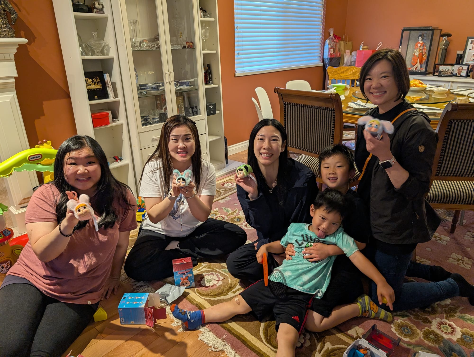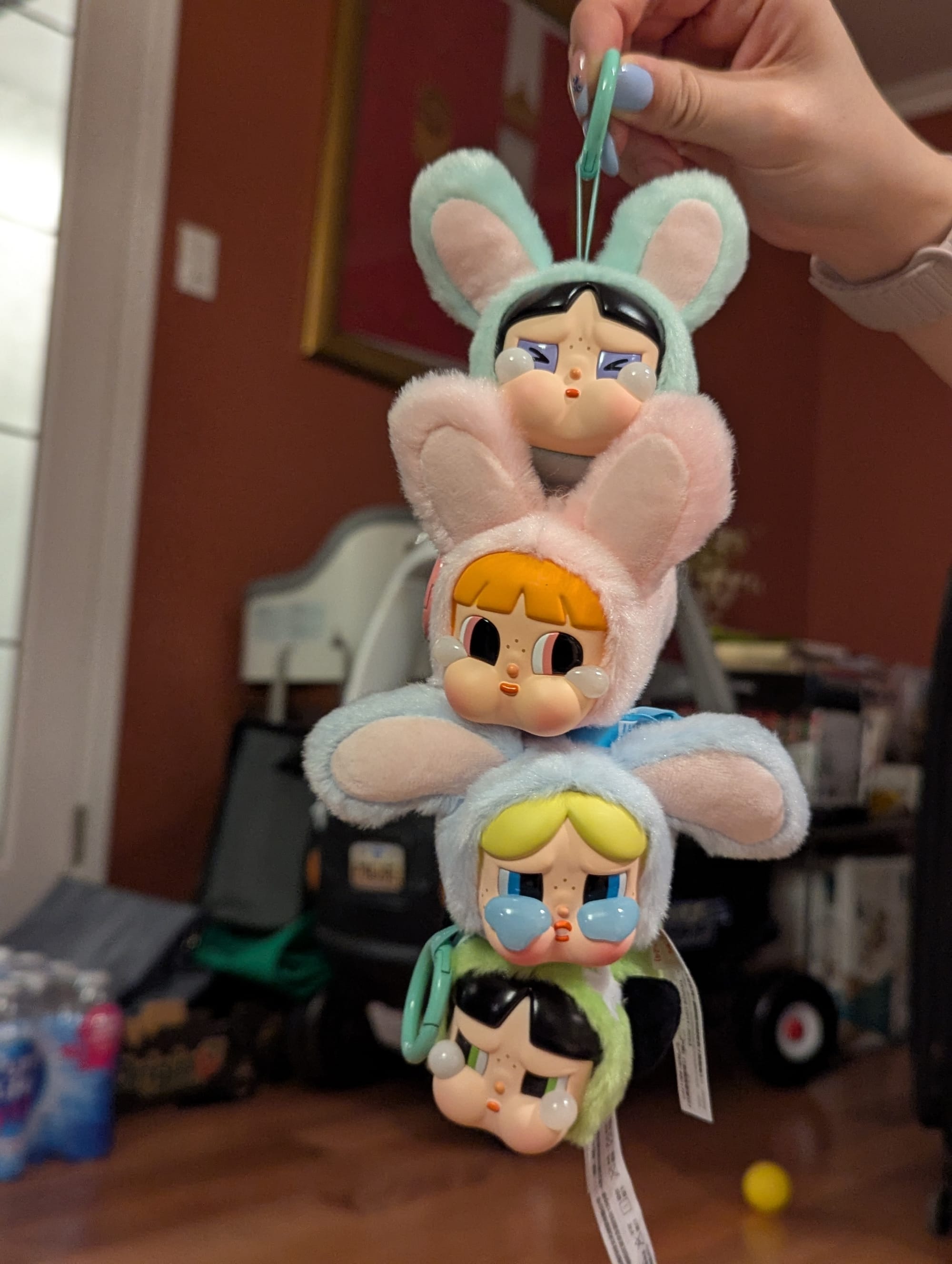 At dinner, the cousins enjoyed some time unboxing their new Power Puff blind boxes