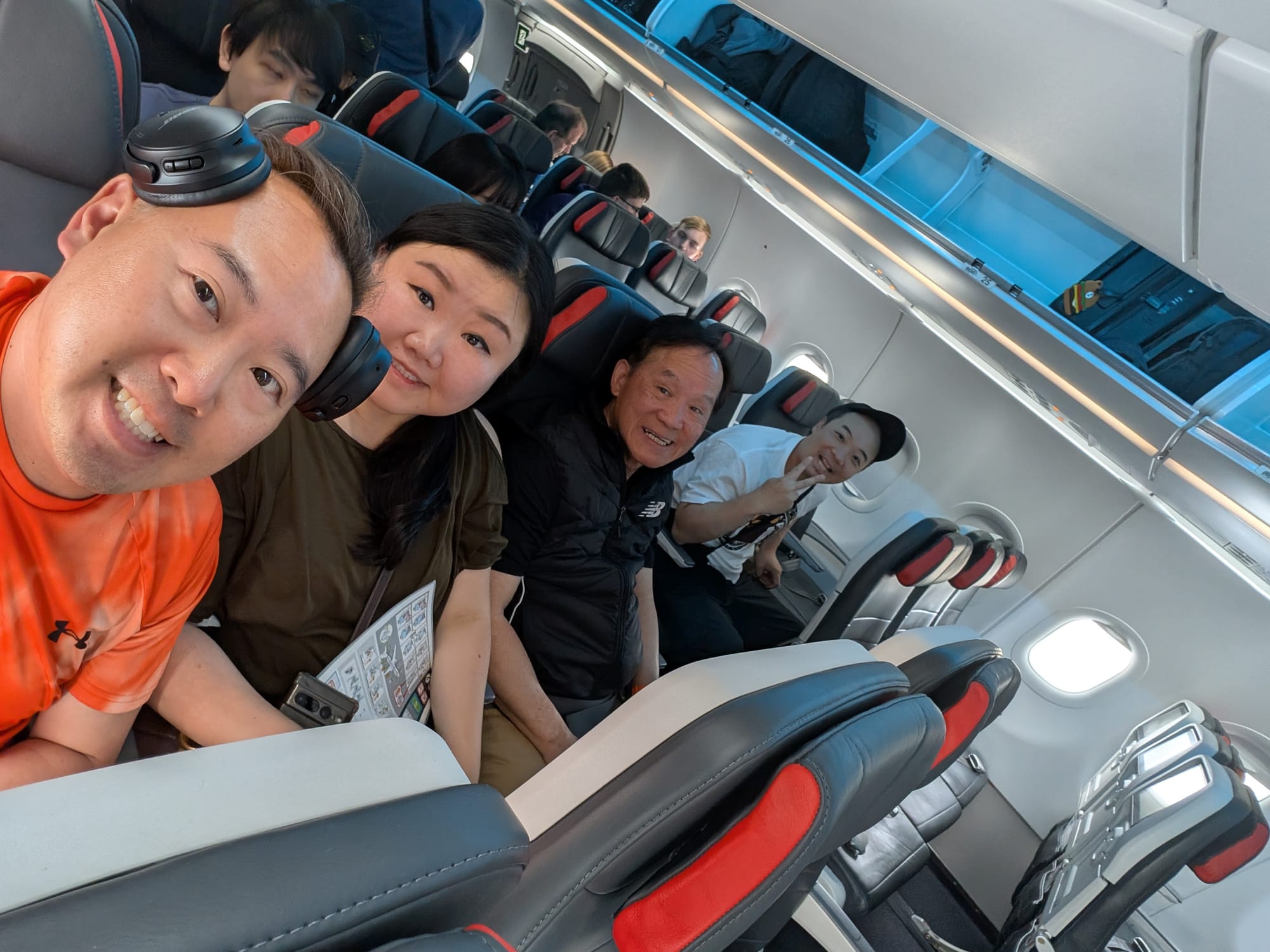 Air Canada plane with the new outfit. These new seats were quite comfortable, wider, and more legroom. The in-flight entertainment system also had bluetooth, so it could connect directly to your headphones. Free wifi for aeroplan members. Worked quite well once we were in the air.